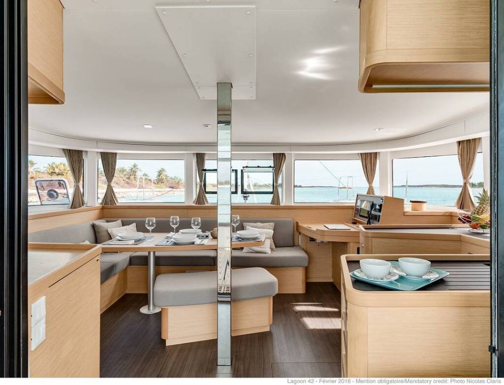 Catamaran Lagoon 42 Alphonse, built in 2019 is anchored in the Seychelles, Mahe, Mahé, Seychelles. It has 4 + 2 cabins, can accommodate 8 + 2 people and has 4 toilets.