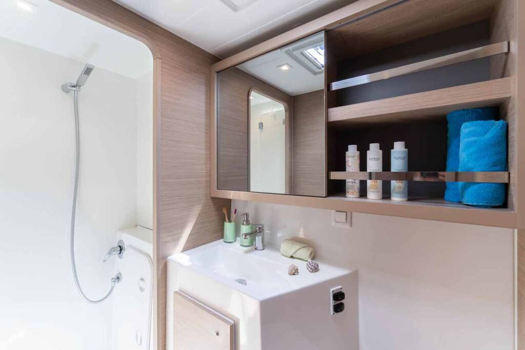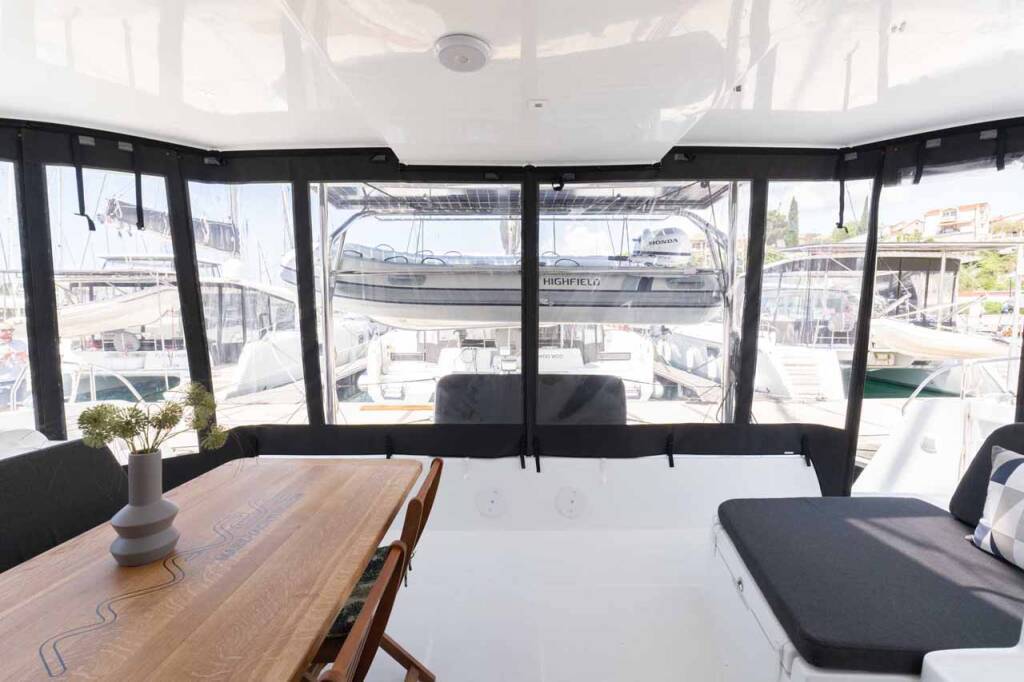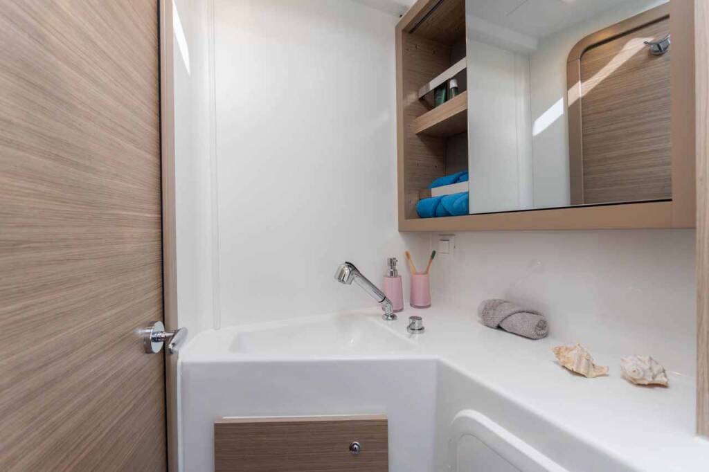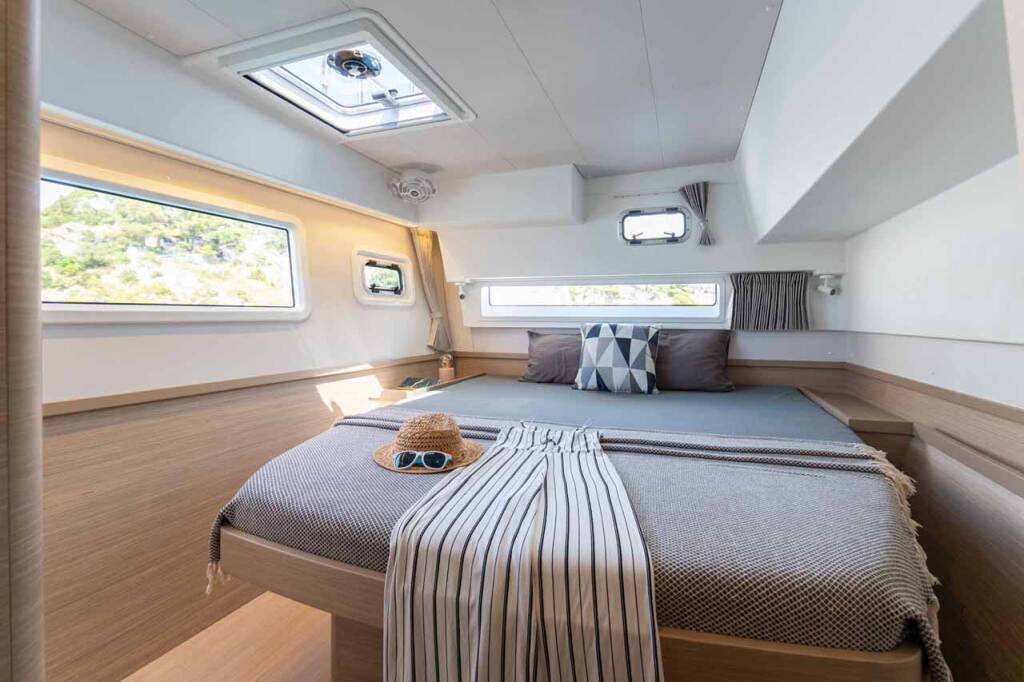 Catamaran Lagoon 42 Mare Tiempo, built in 2024 is anchored in the Marina Mandalina, Sibenik, Šibenik region, Croatia. It has 4 + 2 cabins, can accommodate 8 + 2 + 2 people and has 4 toilets.