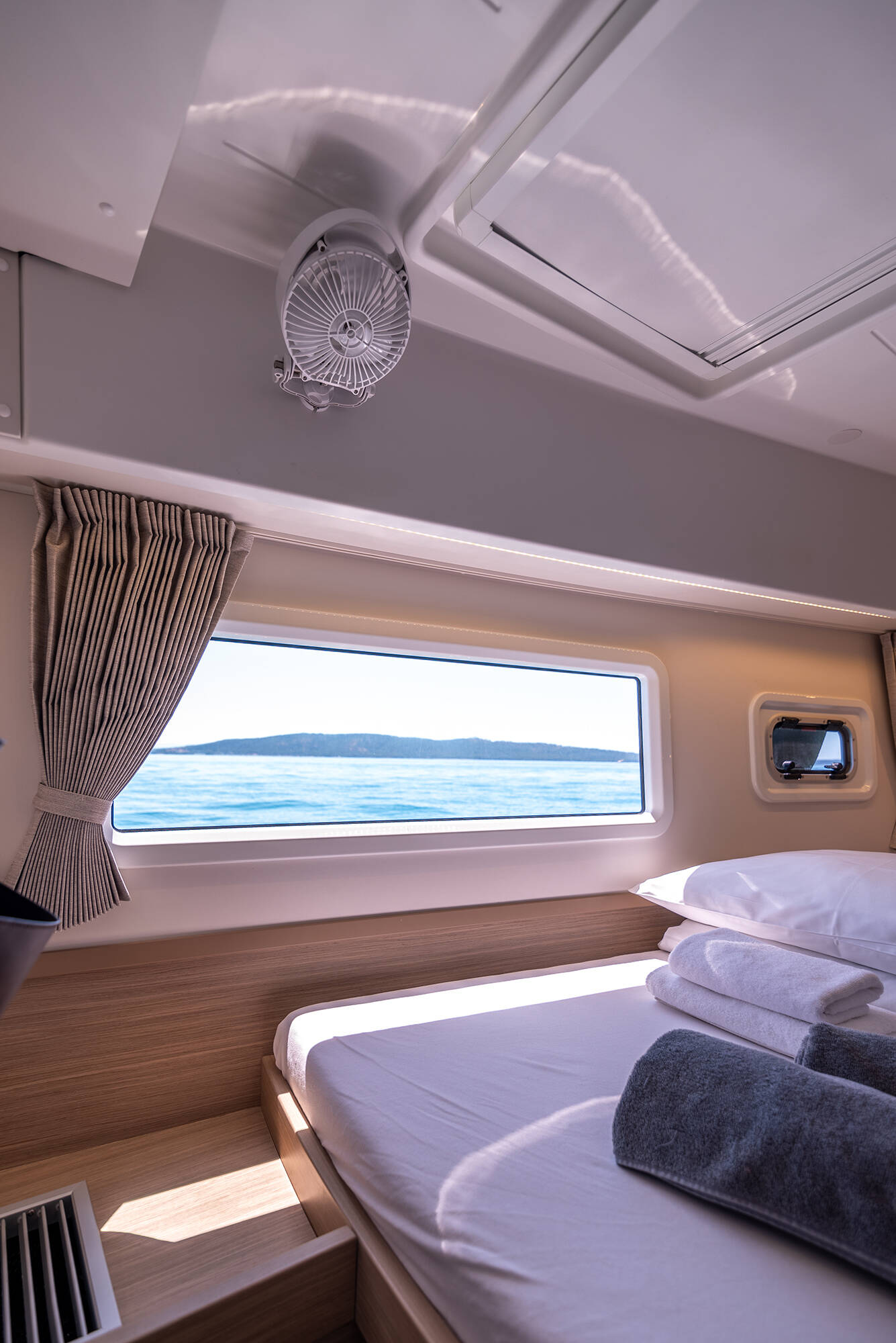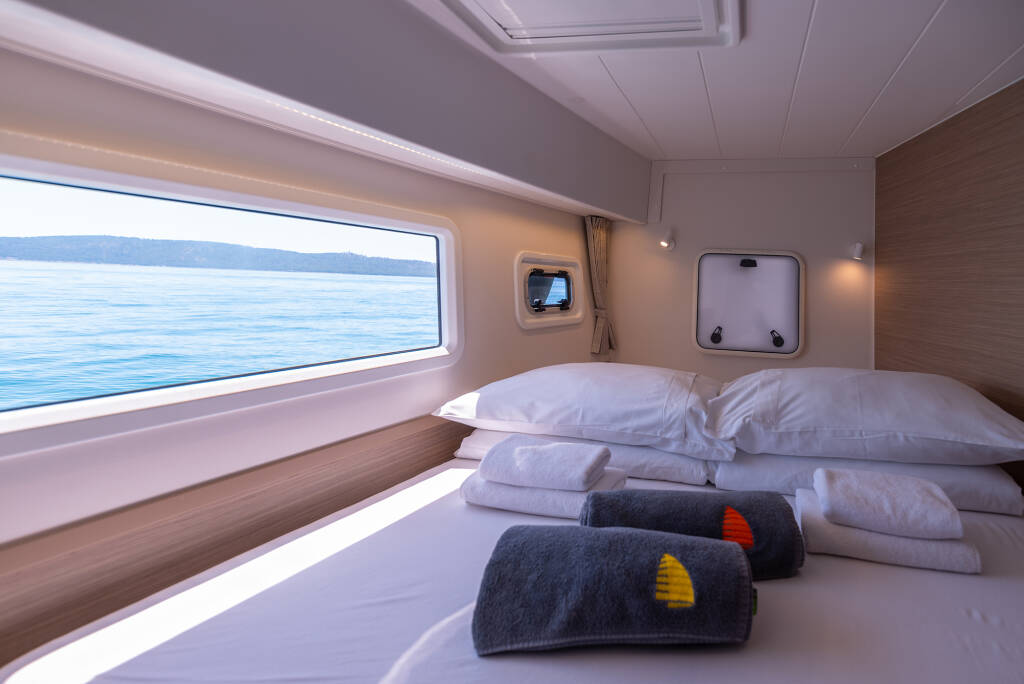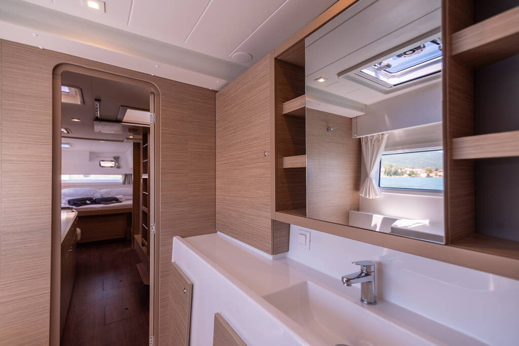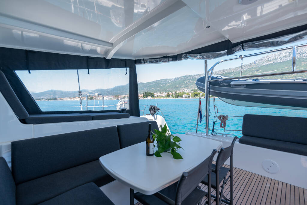Catamaran Lagoon 42 OW Sophie, built in 2023 is anchored in the Marina Kastela, Split region, Croatia. It has 3 + 2 cabins, can accommodate 6 + 2 people and has 3 toilets.