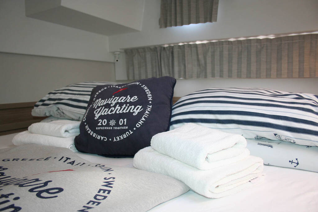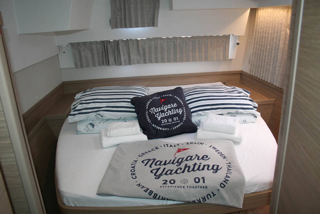 Catamaran Lagoon 42 Seaside dreams, built in 2023 is anchored in the Trogir, Yachtclub Seget (Marina Baotić), Split region, Croatia. It has 4 + 2 cabins, can accommodate 8 + 2 + 2 people and has 4 toilets.