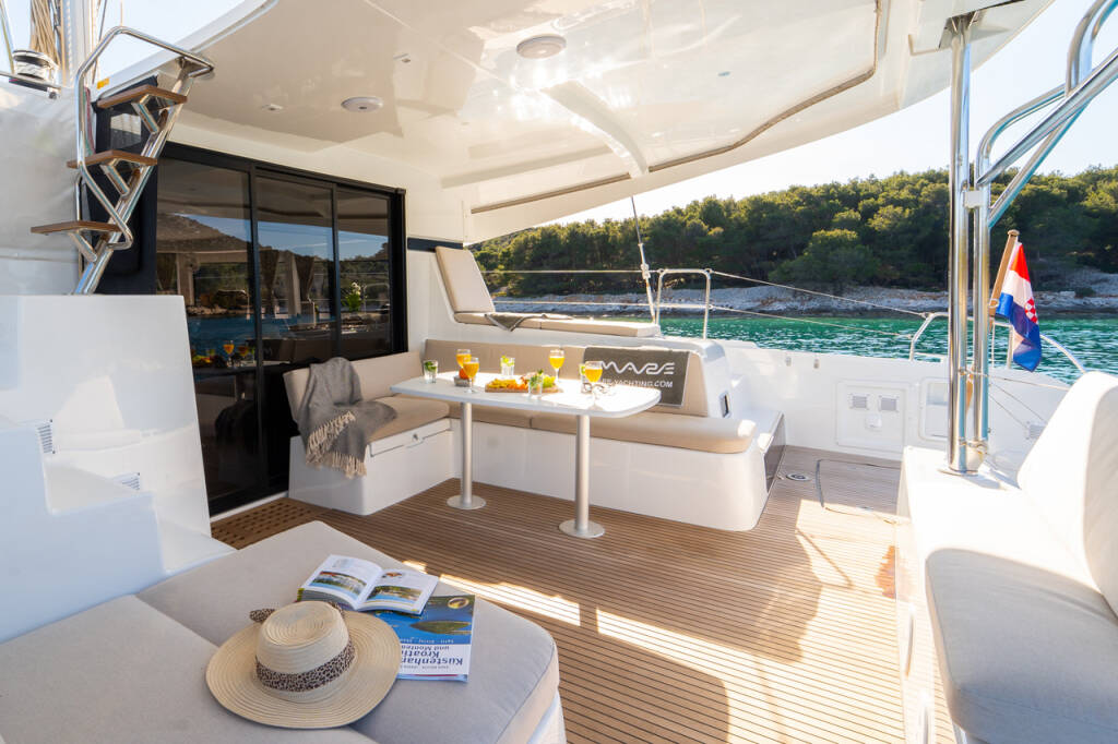 Catamaran Lagoon 42 Serenity, built in 2022 is anchored in the Marina Mandalina, Sibenik, Šibenik region, Croatia. It has 3 + 2 cabins, can accommodate 6 + 2 + 2 people and has 3 toilets.