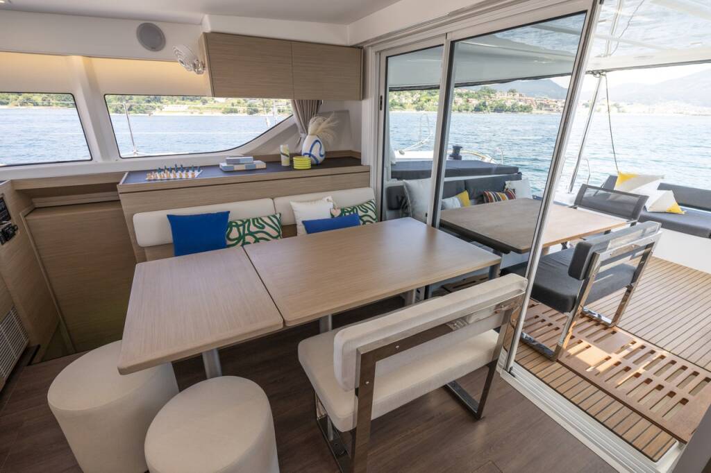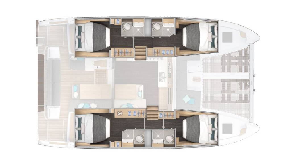 Catamaran Lagoon 43 Bunga Bunga, built in 2025 is anchored in the Trogir, Yachtclub Seget (Marina Baotić), Split region, Croatia. It has 4 + 2 cabins, can accommodate 8 + 2 + 2 people and has 4 toilets.