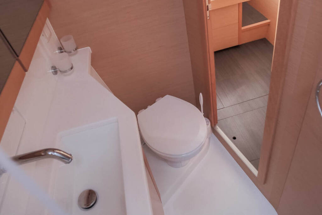 Catamaran Lagoon 450 F Rimta, built in 2019 is anchored in the Athens, Alimos marina, Athens area/Saronic/Peloponese, Greece. It has 4 + 2 cabins, can accommodate 8 + 2 + 2 people and has 4 toilets.