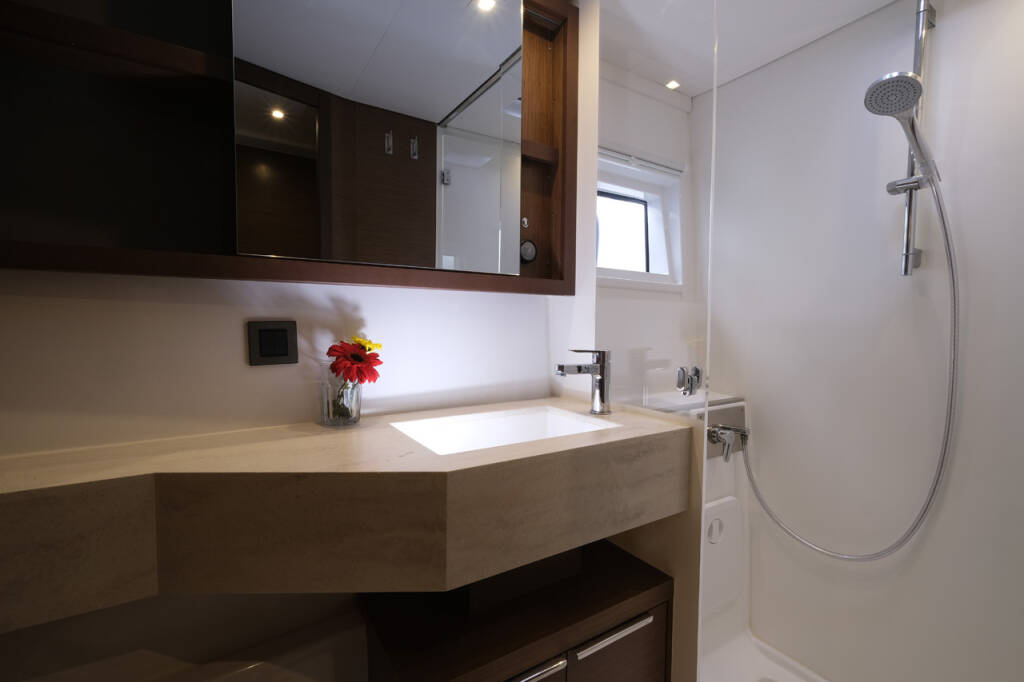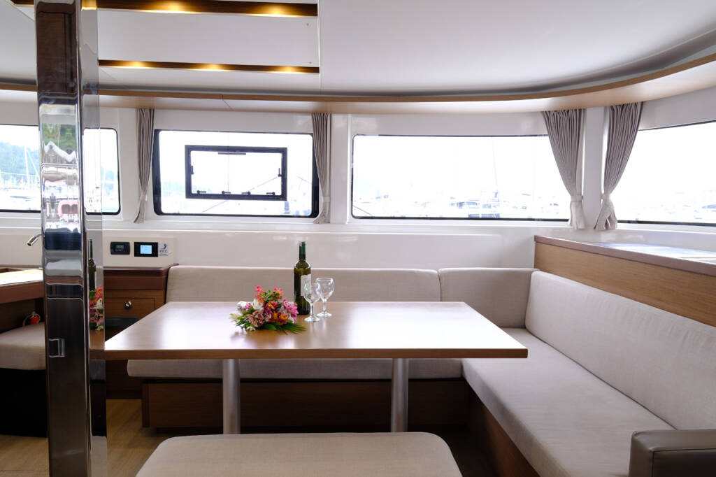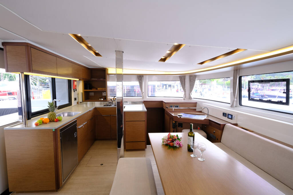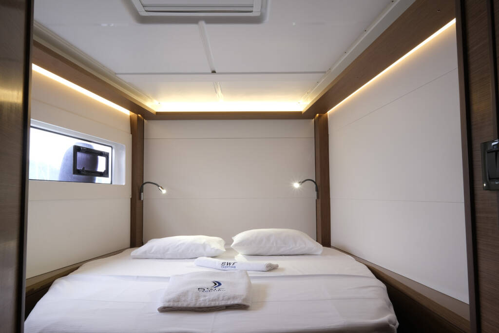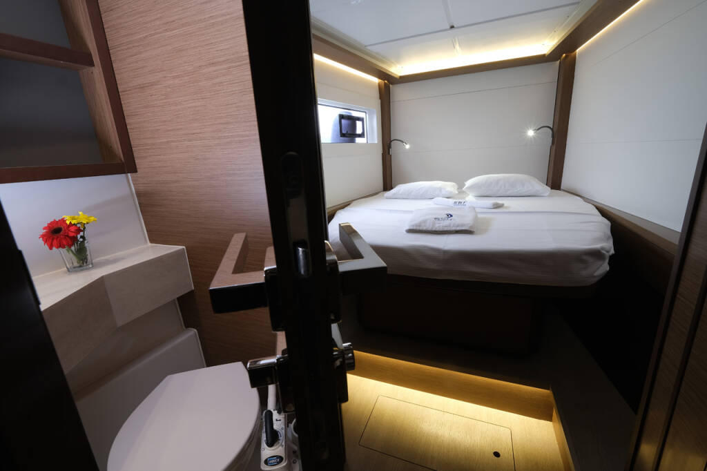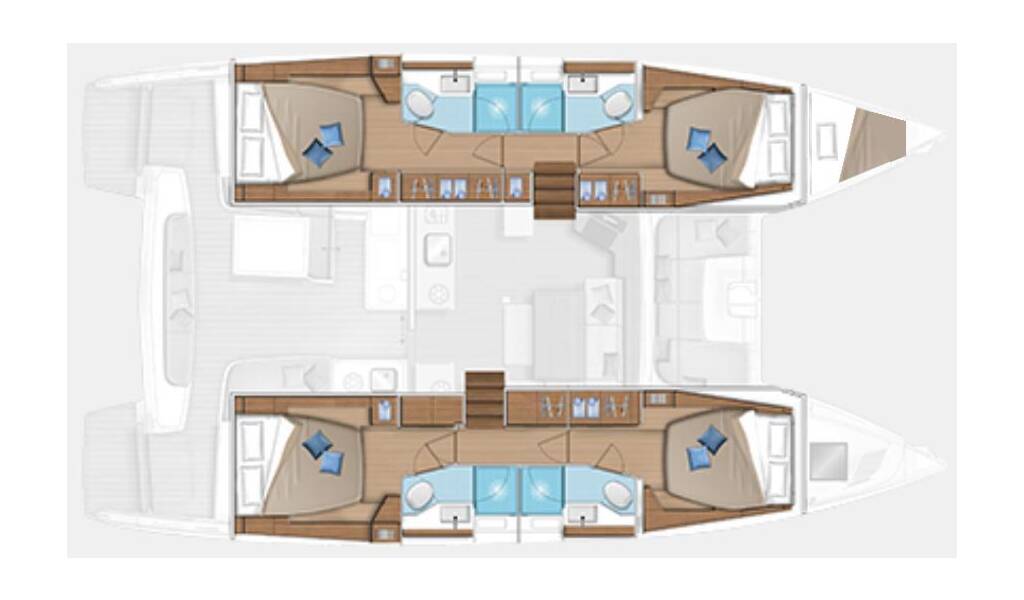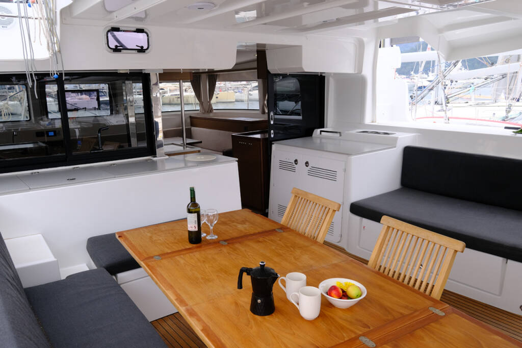 Catamaran Lagoon 46 Blu, built in 2020 is anchored in the Volos, Skiathos/Sporades, Volos, Greece. It has 4 + 1 cabins, can accommodate 8 + 1 people and has 4 toilets.