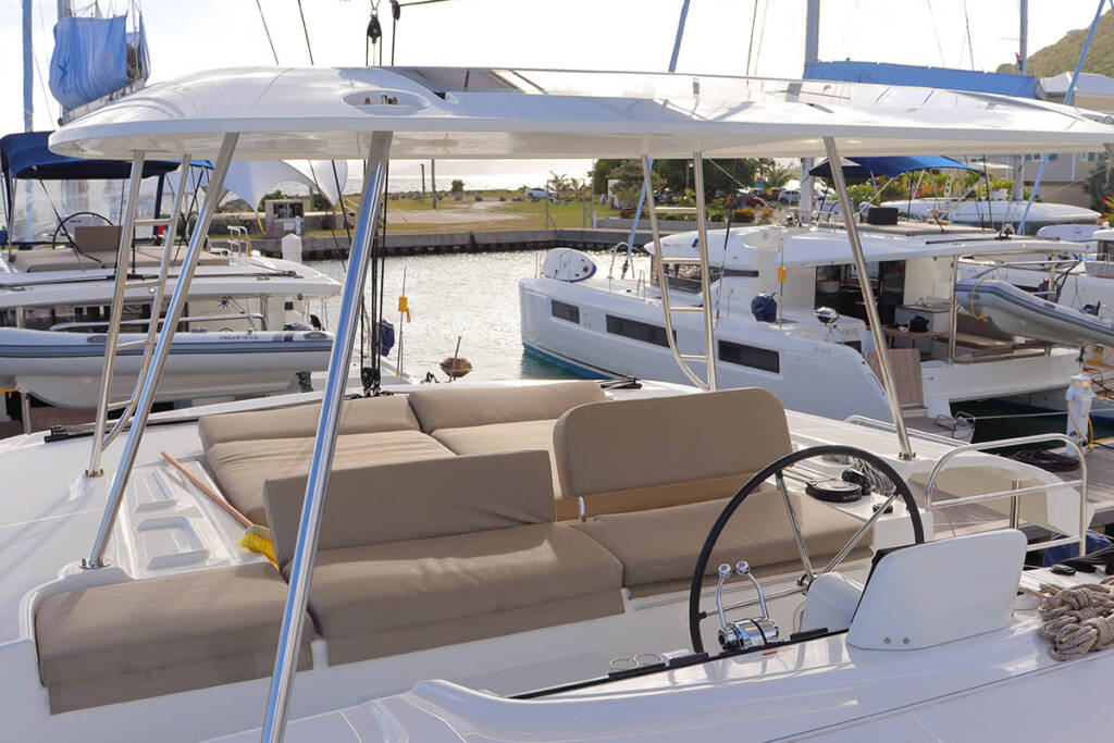 Catamaran Lagoon 46 Happy Fluke, built in 2023 is anchored in the BVI, Tortola, Nanny Cay Marina, British Virgin Islands, British Virgin Islands. It has 4 + 2 cabins, can accommodate 8 + 2 + 2 people and has 4 toilets.