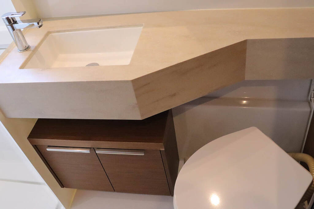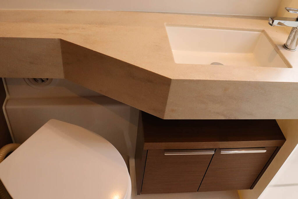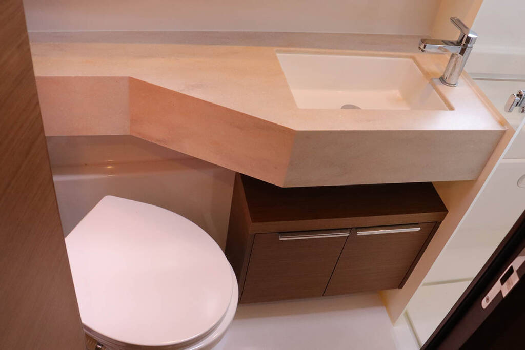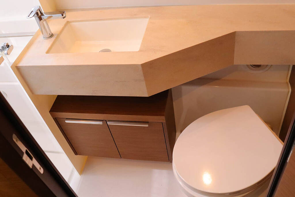 +provisioning ; Crew on board must have their own toilets/ showers. If either a skipper or a hostess/cook is on board, 1 double cabin will be required for him/her. If both a skipper and a hostess/cook are on board, 1 double cabin and 1 forepeak cabin will be required for them. Exceptions exists for specific layouts, Sales Agents will provide more details about the different boat models.