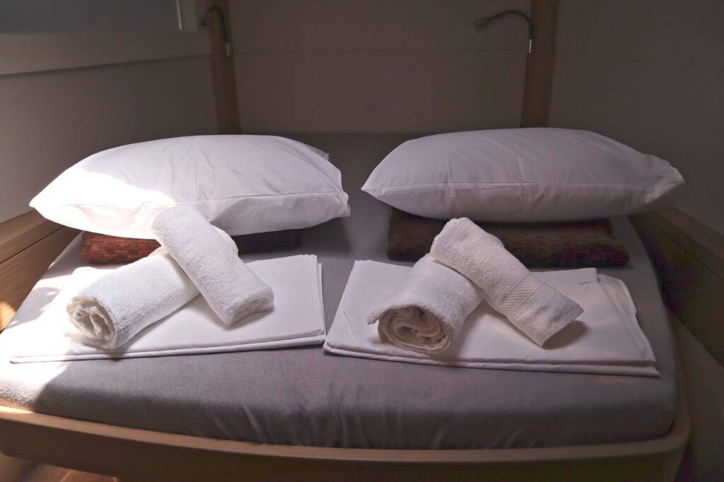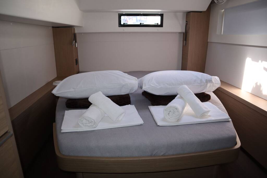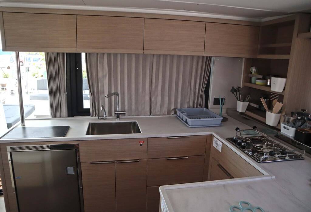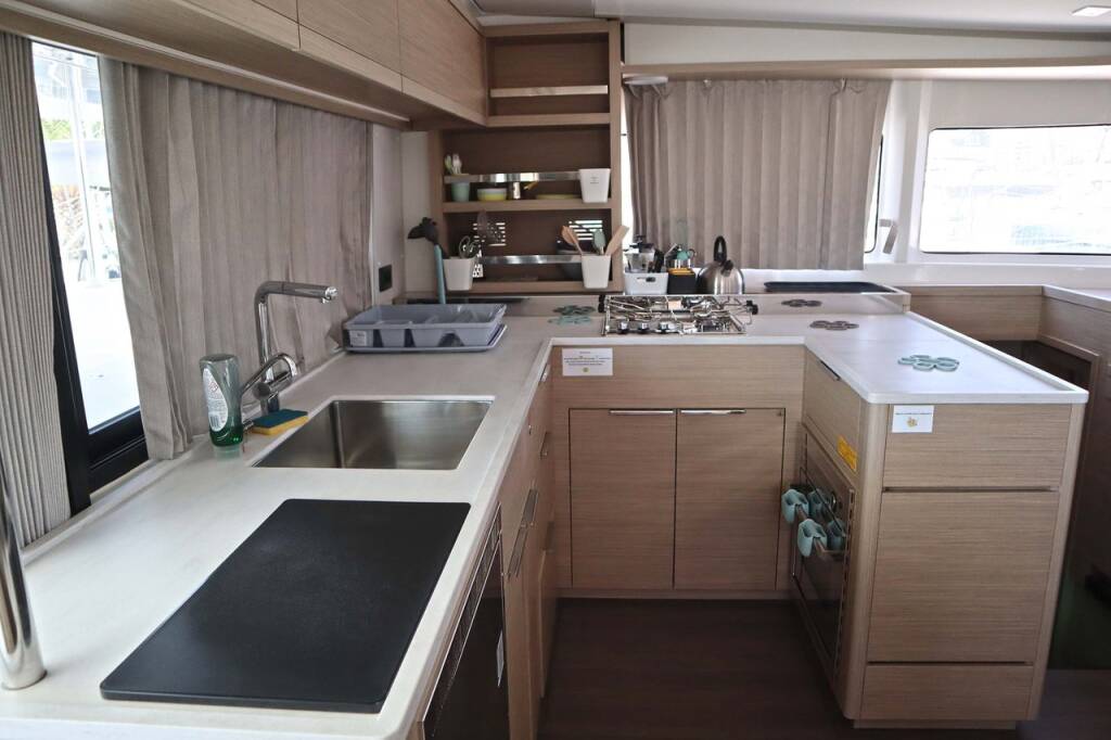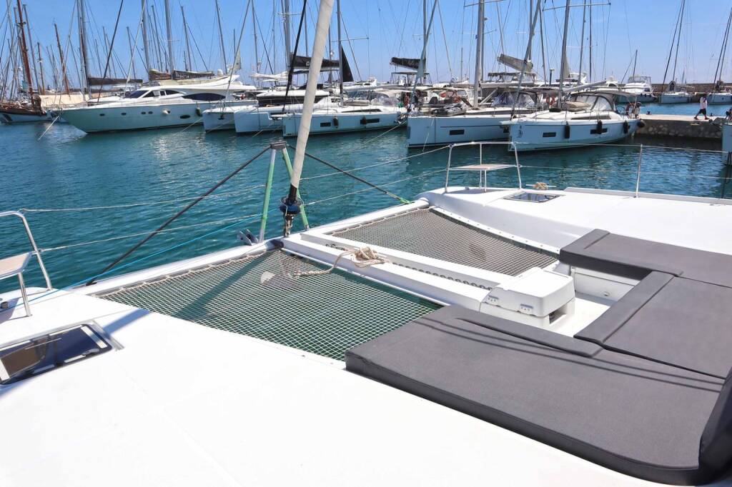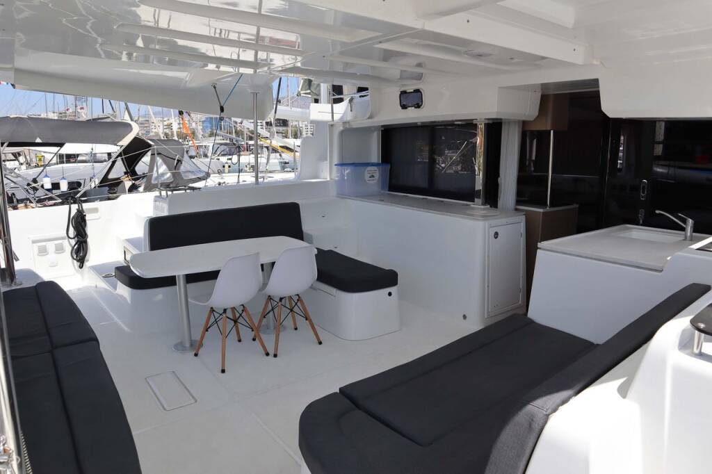 Catamaran Lagoon 46 Krista, built in 2024 is anchored in the Athens, Alimos marina, Athens area/Saronic/Peloponese, Greece. It has 4 + 2 cabins, can accommodate 8 + 2 people and has 4 toilets.