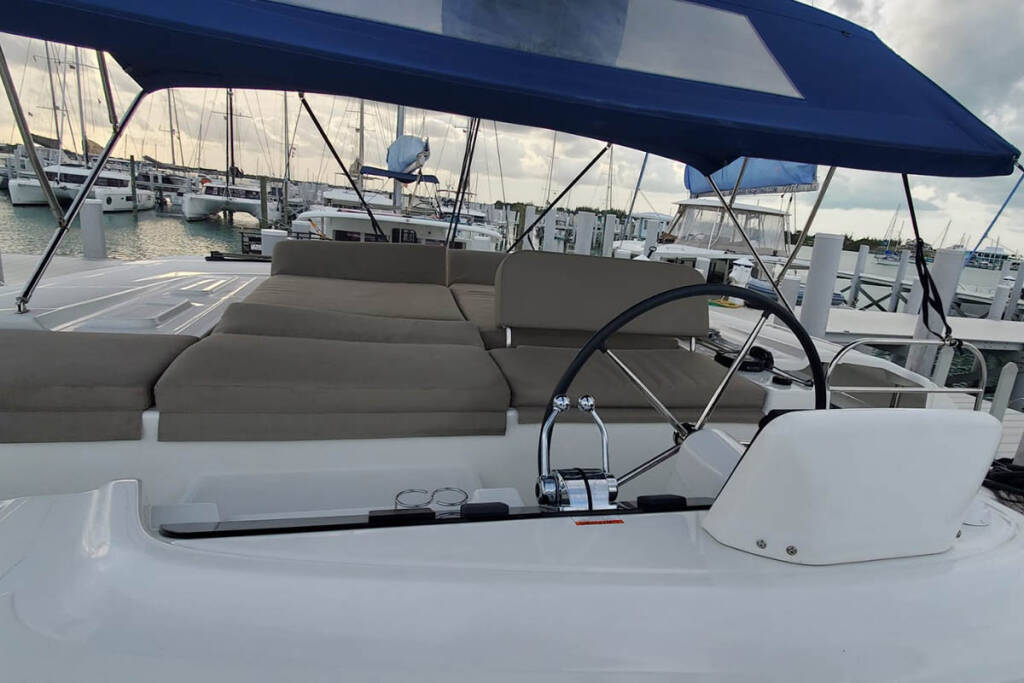 Catamaran Lagoon 46 Sir Jax, built in 2023 is anchored in the Marsh Harbour, Conch Inn Marina, Abaco Islands, Bahamas. It has 4 + 2 cabins, can accommodate 8 + 2 + 2 people and has 4 toilets.