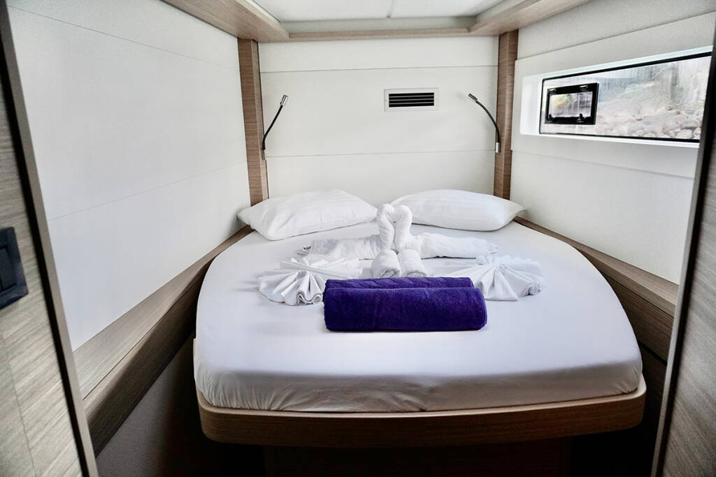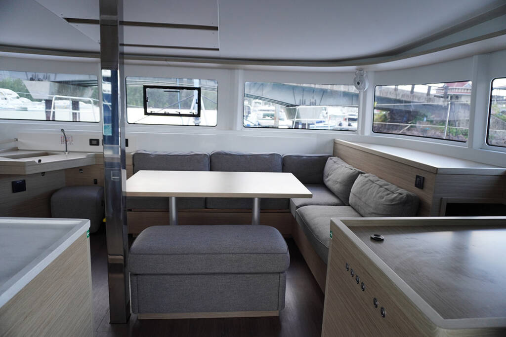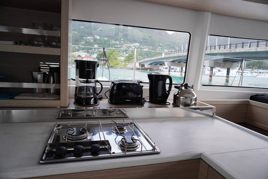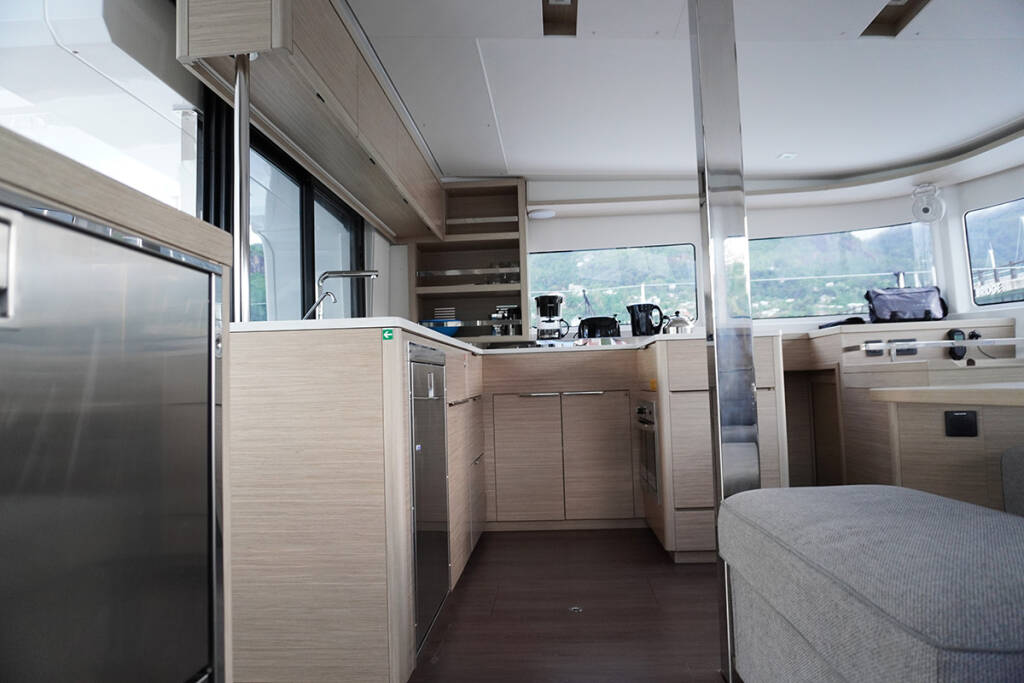 Catamaran Lagoon 46 Trinity, built in 2023 is anchored in the Seychelles, Eden Island Marina, Mahé, Seychelles. It has 4 + 2 cabins, can accommodate 8 + 2 people and has 4 toilets.