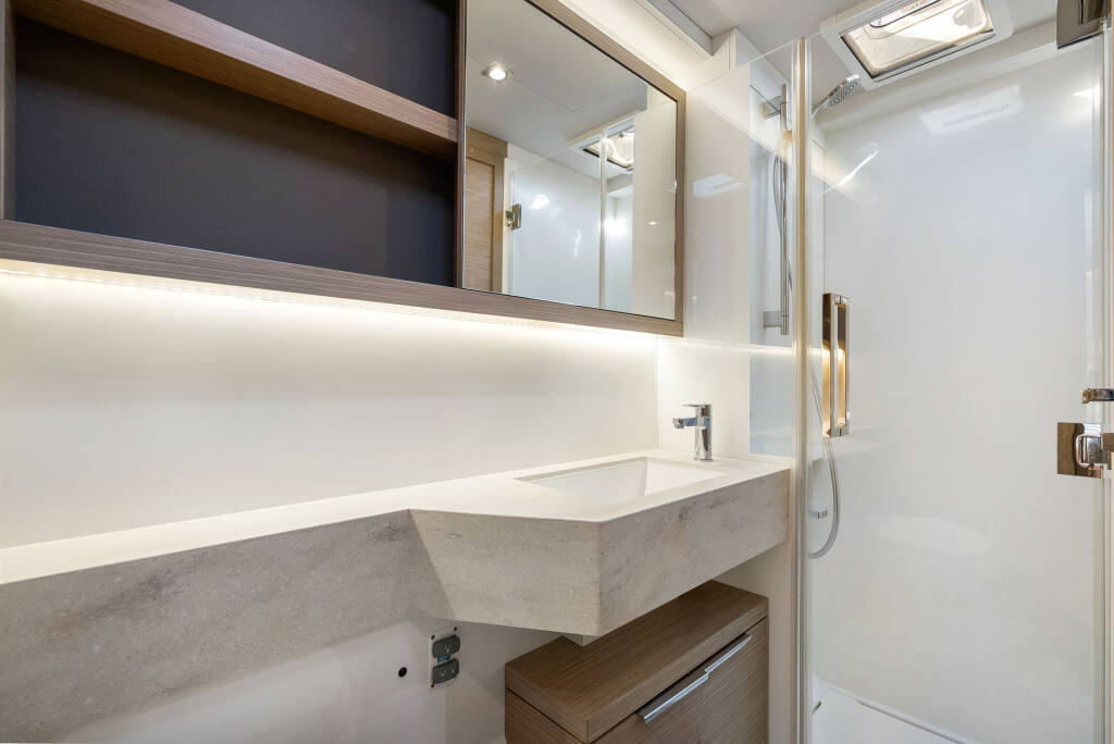 Catamaran Lagoon 51 Slinky Malinki, built in 2025 is anchored in the BVI, Tortola, Nanny Cay Marina, British Virgin Islands, British Virgin Islands. It has 6 + 1 cabins, can accommodate 12 + 1 people and has 4 + 1 toilets.