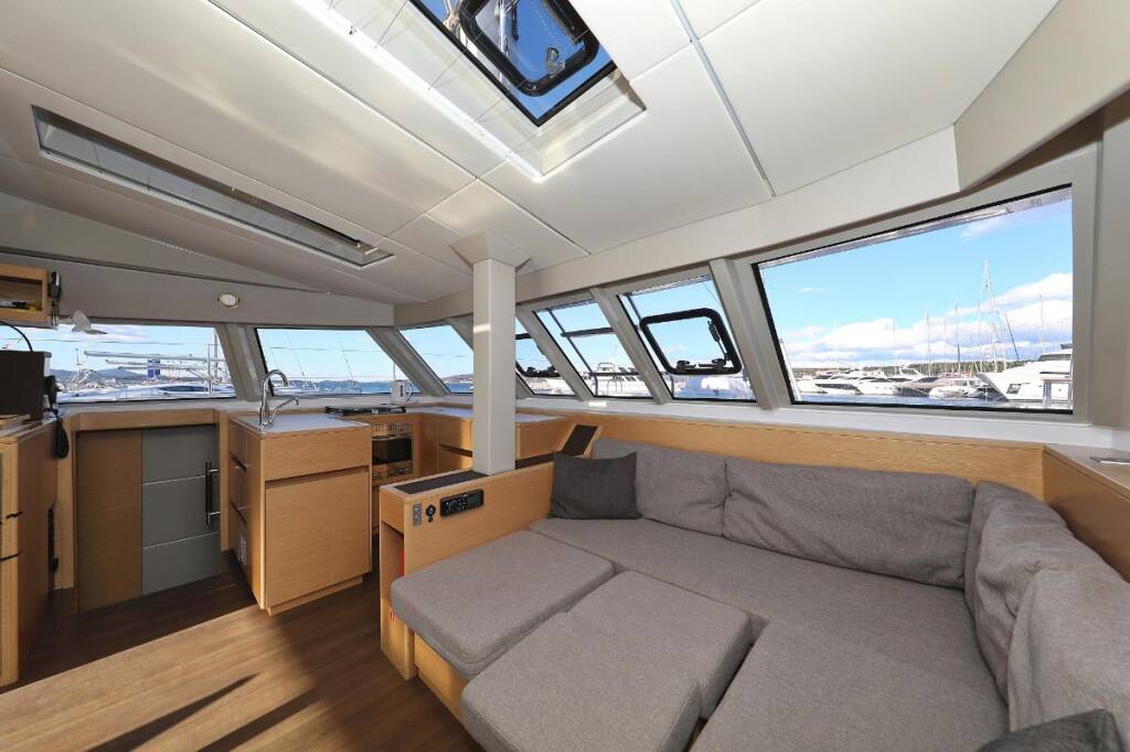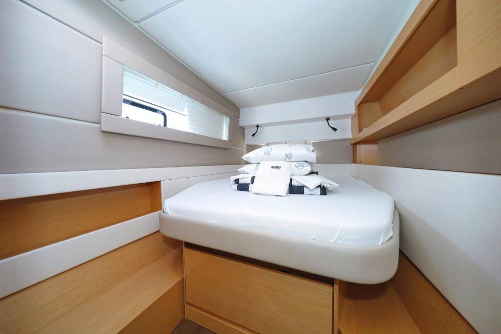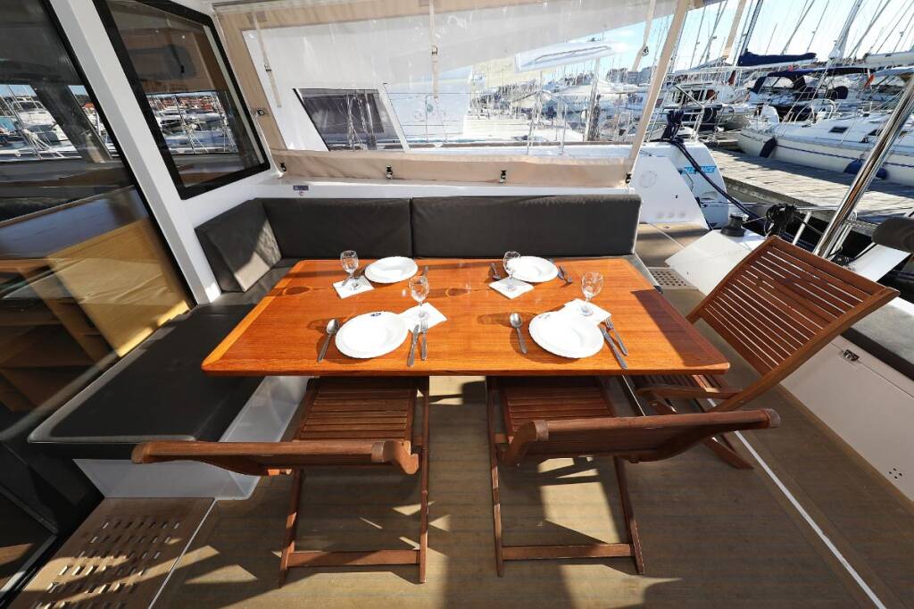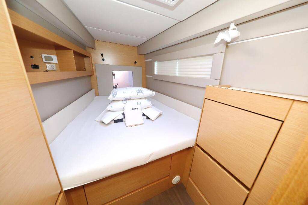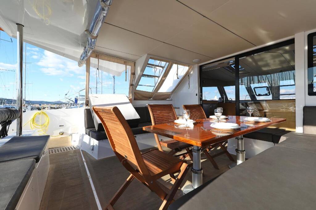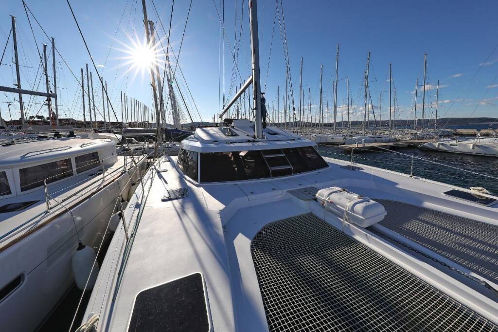 Catamaran Nautitech 46 Alphabeta, built in 2017 is anchored in the Marina Tehnomont Veruda, Pula, Istra, Croatia. It has 4 + 2 cabins, can accommodate 8 + 2 + 2 people and has 4 toilets.
