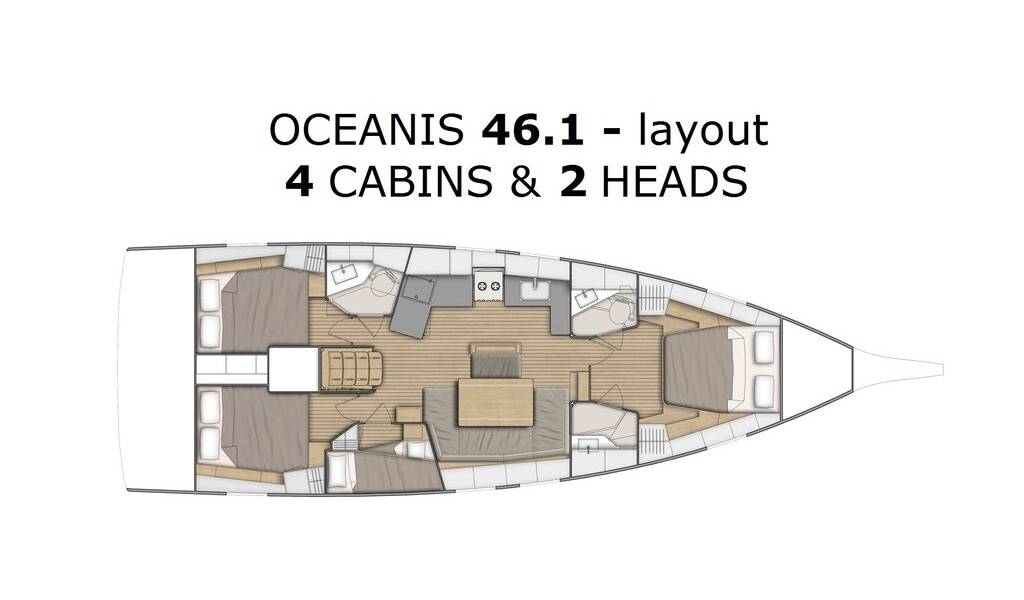 Sailing yacht Oceanis 46.1 Nauti Buoy, built in 2021 is anchored in the ACI Marina Split, Split region, Croatia. It has 4 cabins, can accommodate 8 + 2 people and has 2 toilets.