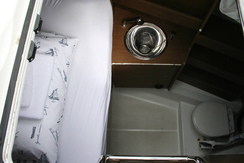 +provisioning ; Crew on board must have their own toilets/ showers. If either a skipper or a hostess/cook is on board, 1 double cabin will be required for him/her. If both a skipper and a hostess/cook are on board, 1 double cabin and 1 forepeak cabin will be required for them. Exceptions exists for specific layouts, Sales Agents will provide more details about the different boat models. // In Spain, law requires clients to pay skipper directly with a contract established between both parties