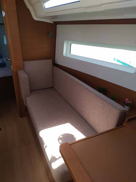 Sailing yacht Sun Odyssey 380 Bright Elli, built in 2022 is anchored in the ACI Marina Trogir, Split region, Croatia. It has 3 cabins, can accommodate 6 + 1 people and has 2 toilets.