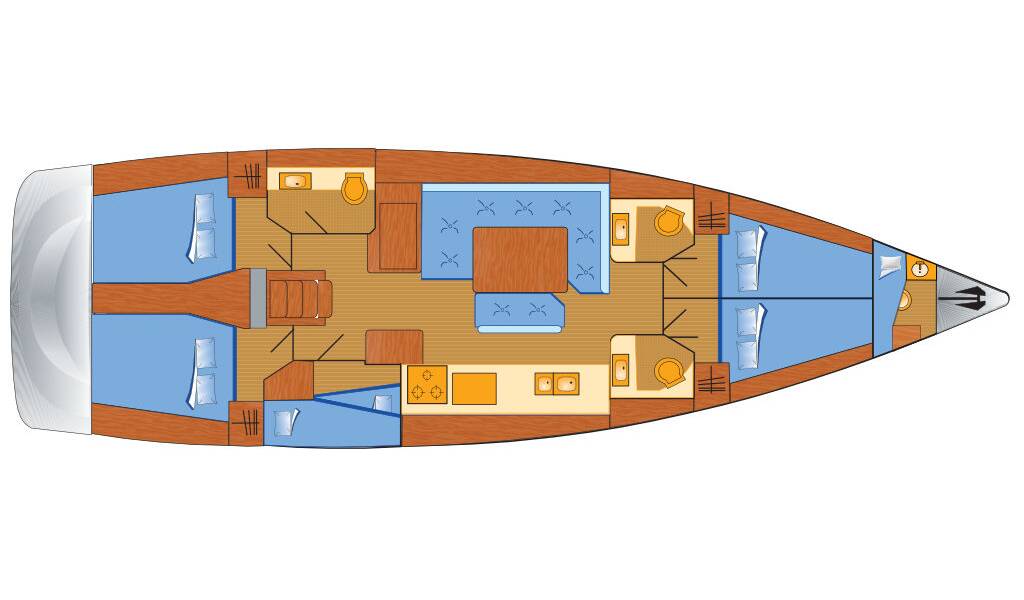 Sailing yacht Sun Odyssey 519 Elsa, built in 2018 is anchored in the Marina Frapa, Rogoznica, Šibenik region, Croatia. It has 5 + 1 cabins, can accommodate 10 + 2 + 1 people and has 3 toilets.