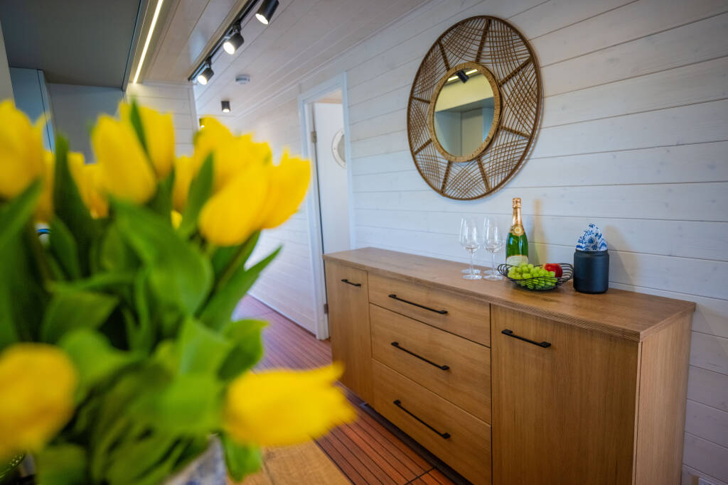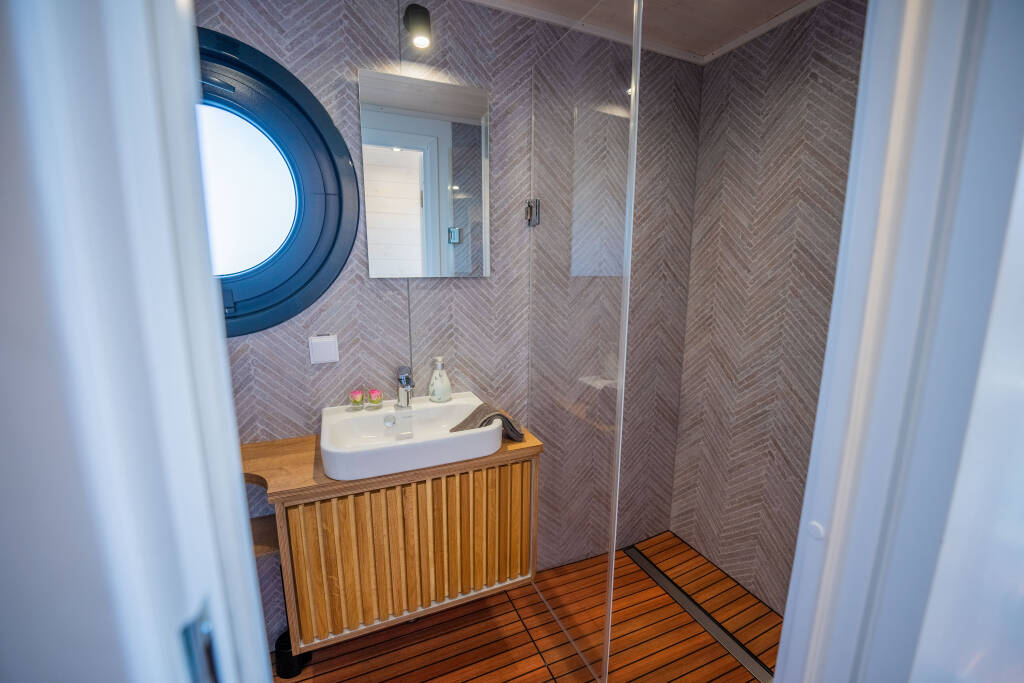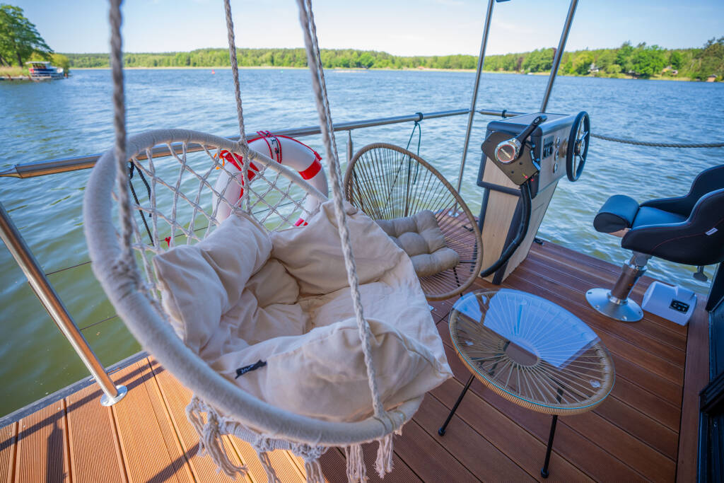 Motor yacht Woma D13 Elements, built in 2024 is anchored in the Röblinsee Marina, Brandenburg, Germany. It has 2 cabins, can accommodate 4 + 2 people and has 1 toilets.