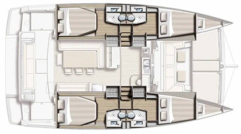 Catamarano Bali 4.1 Double Six, costruito nel 2019 è ormeggiato in Malta, Kalkara Marina, Malta Xlokk, Malta. Ha 4 cabine, può ospitare 8 + 2 persone e dispone di 4 bagni.