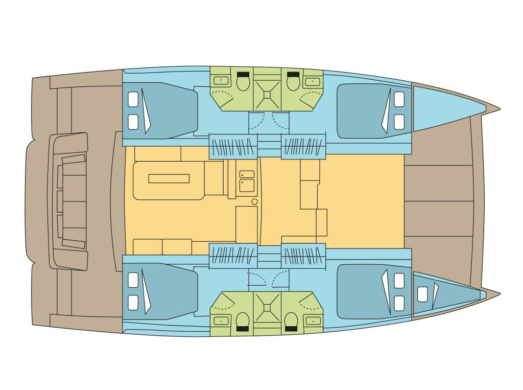 INCLUDED: starter pack – (1 gallon water or 4 bottles of 1.5L, 1 bottle of disinfectant, 1 small bottle of washing up liquid, 1 dish cloth, 1 sponge, garbage bags, 1 roll of paper towels, 1 box of matches, 1 roll of toilet paper in each head) // final cleaning // 1 set of bed sheets / cabin & 1 set of towels / pax, dinghy, outboard engine & initial supply of fuel, gas and water tanks // DYC assistance guarantee // 1st & last night in the marina // NOT INCLUDED: refuelling, gas & water consumption at end of charter, taxes if any, handling fees & additional equipment deposit.