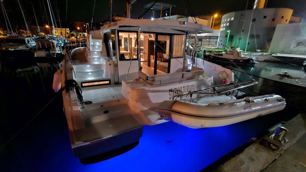- Includes: SUP, end cleaning, bed linen (1 set/person: pillow, blanket, sheets, duvet cover) + medium towel (50x100cm) and a large towel (70x140cm), 2 x gas bottles for the kitchen, basic kitchen package (2 dish towels, dish soap) and a bathroom package (hand soap, 1 roll of toilet paper per toilet), FREE WIFI, dinghy with outboard engine 9 HP + 5L fuel for the outboard engine, one snorkelling set, check-in and out services, diver inspection during standard check-out time - Da pagare in base