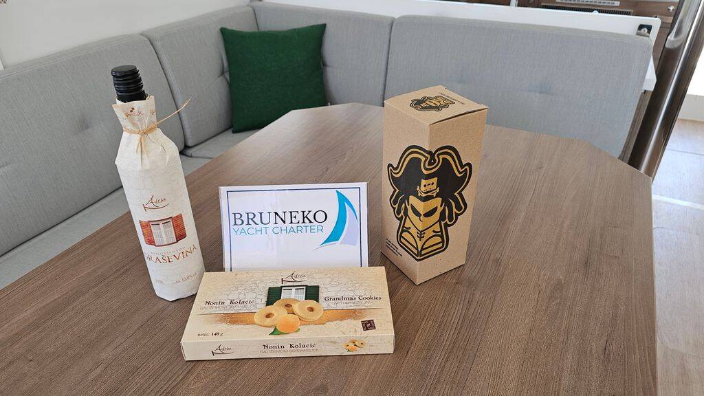 - Includes: Early check-in, SUP, end cleaning, bed linen (1 set/person: pillow, blanket, sheets, duvet cover) + medium towel (50x100cm) and a large towel (70x140cm), 2 x gas bottles for the kitchen, basic kitchen package (2 dish towels, dish soap) and a bathroom package (hand soap, 1 roll of toilet paper per toilet), FREE WIFI, dinghy with outboard engine 9 HP + 5L fuel for the outboard engine, one snorkelling set, check-in and out services, diver inspection during standard check-out time - Da pagare in base