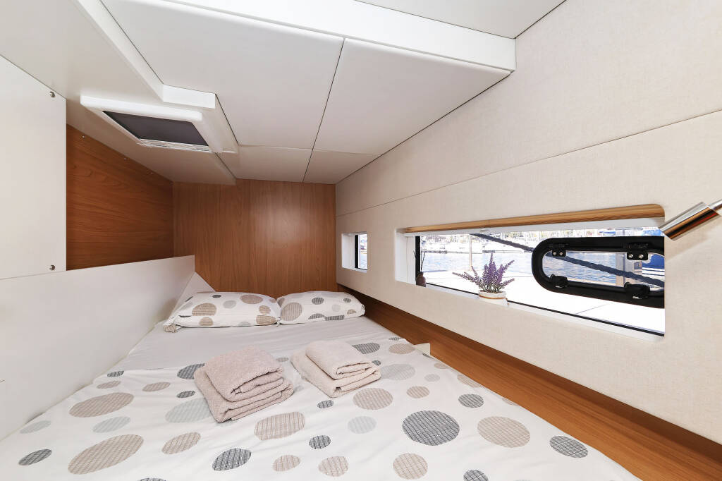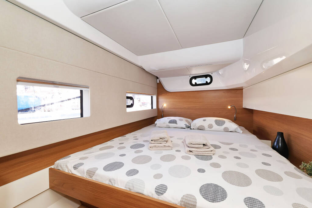 Catamarano Bali Catsmart Arpina, costruito nel 2024 è ormeggiato in Marina Mandalina, Sibenik, Sibenik, Croazia. Ha 4 + 1 cabine, può ospitare 8 + 1 persone e dispone di 2 bagni.
