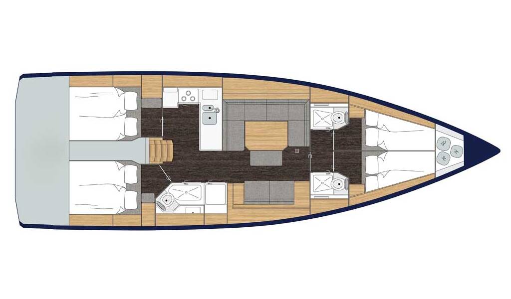 Barca a vela Bavaria C45 Black Velvet, costruito nel 2023 è ormeggiato in Corfu, Gouvia Marina, Isole Ioniche, Grecia. Ha 4 cabine, può ospitare 8 + 1 persone e dispone di 3 bagni.