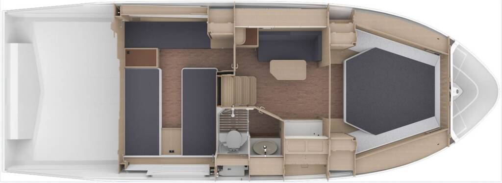 Motor Yacht Bavaria SR36 Open Top Ostwind, costruito nel 2023 è ormeggiato in Mallorca, Cala D`or, Isole Baleari, Spagna. Ha 2 cabine, può ospitare 4 + 2 persone e dispone di 1 bagni.