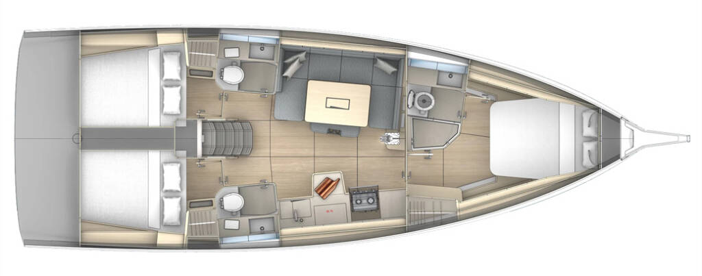 Barca a vela Dufour 41 Ela, costruito nel 2025 è ormeggiato in ACI Marina Trogir, Split regione, Croazia. Ha 3 cabine, può ospitare 6 + 1 persone e dispone di 3 bagni.