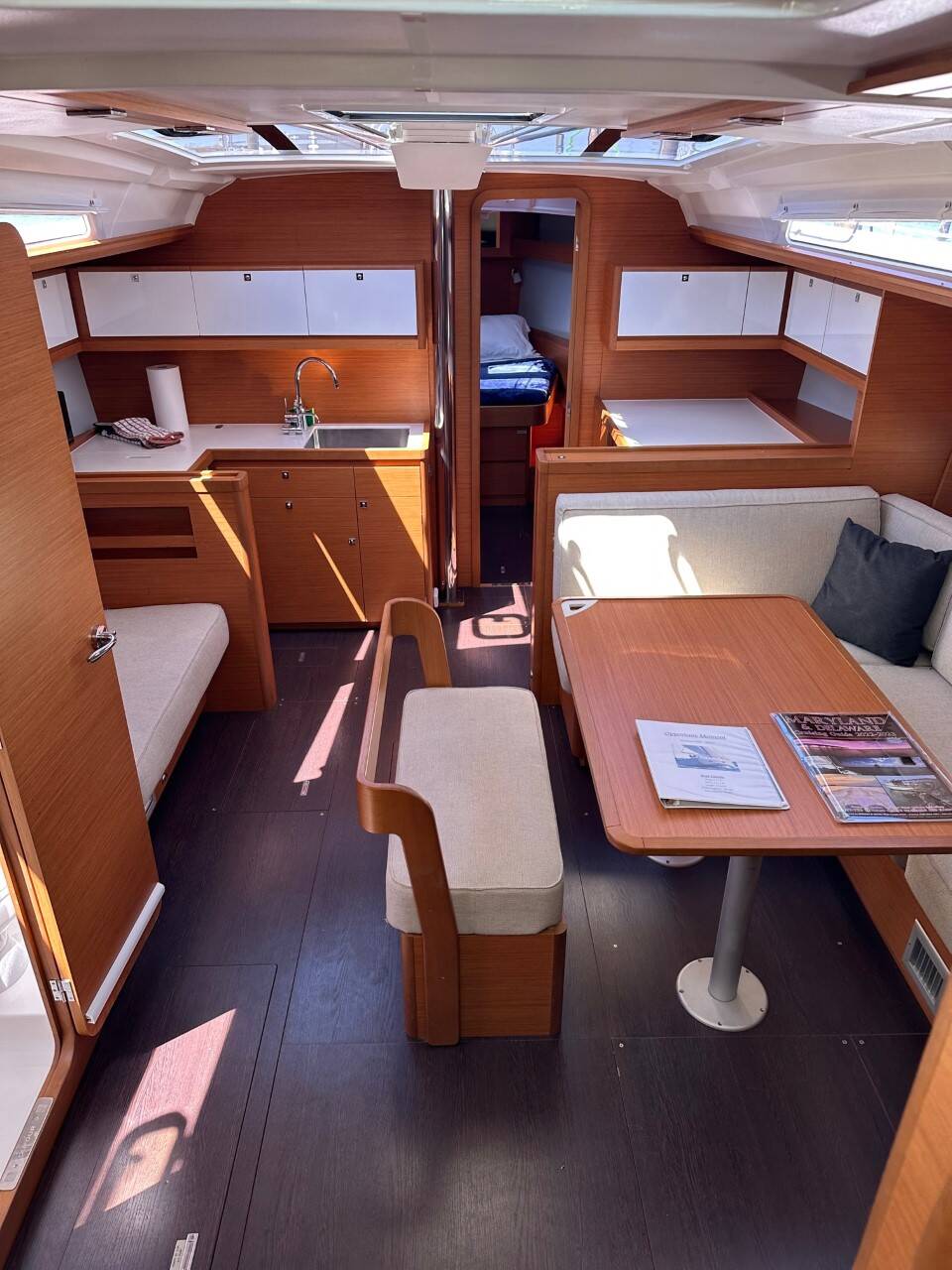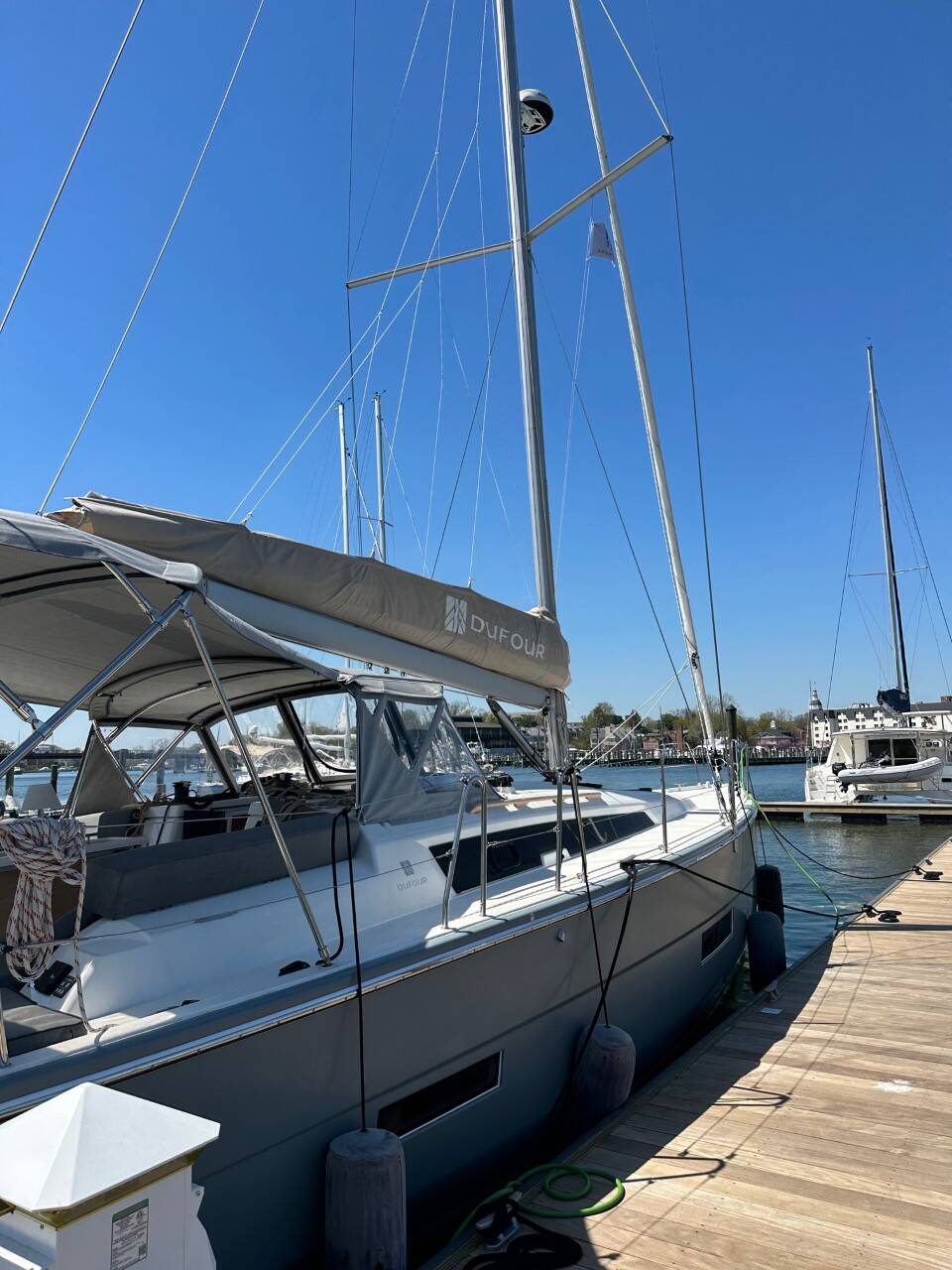 Barca a vela Dufour 430 Opportune Moment, costruito nel 2021 è ormeggiato in Annapolis, Chesapeake Bay, Chesapeake Bay, USA. Ha 3 cabine, può ospitare 6 persone e dispone di 2 bagni.