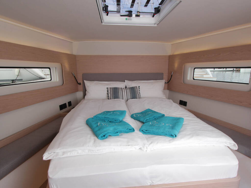 (not commissionable, payable at the base in cash): cleaning, cooking gas, bed linen (2 sheets, 1 pillowcase, 2 bath towels per person per week), mooring fees at Olympic Marina for the duration of the charter - Da pagare in base