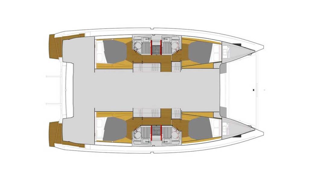 Catamarano Fountaine Pajot Astrea 42 Flonja, costruito nel 2024 è ormeggiato in Marina Kornati, Biograd, Zadar, Croazia. Ha 4 + 2 cabine, può ospitare 8 + 1 + 2 persone e dispone di 4 bagni.