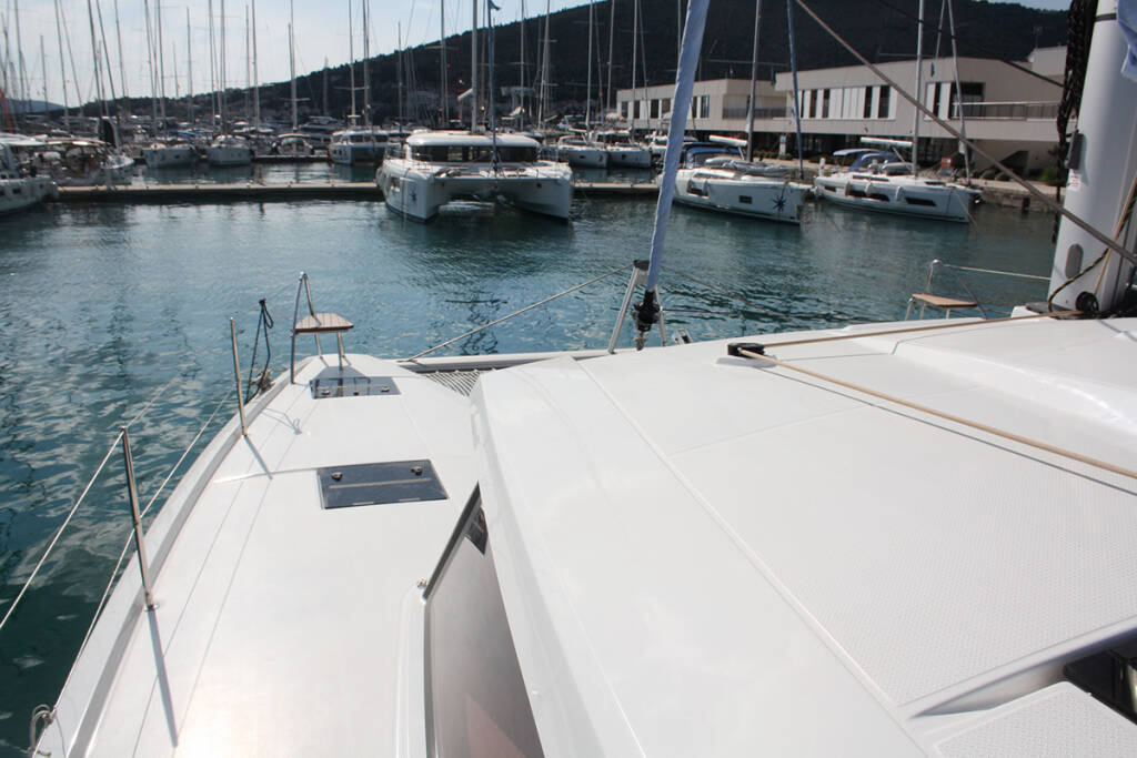 Catamarano Fountaine Pajot Astrea 42 Mae Fee, costruito nel 2025 è ormeggiato in Trogir, Yachtclub Seget (Marina Baotić), Split regione, Croazia. Ha 4 + 2 cabine, può ospitare 8 + 1 + 2 persone e dispone di 4 bagni.