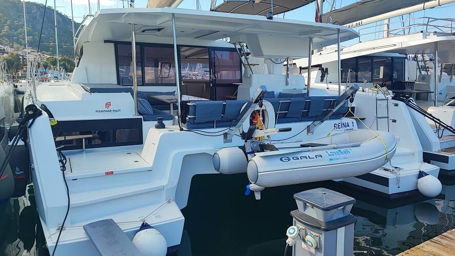 Catamarano Fountaine Pajot Astrea 42 Reina, costruito nel 2022 è ormeggiato in Fethiye, Yacht Classic Hotel Marina, Egeo, Turchia. Ha 4 + 2 cabine, può ospitare 8 + 2 persone e dispone di 4 bagni.
