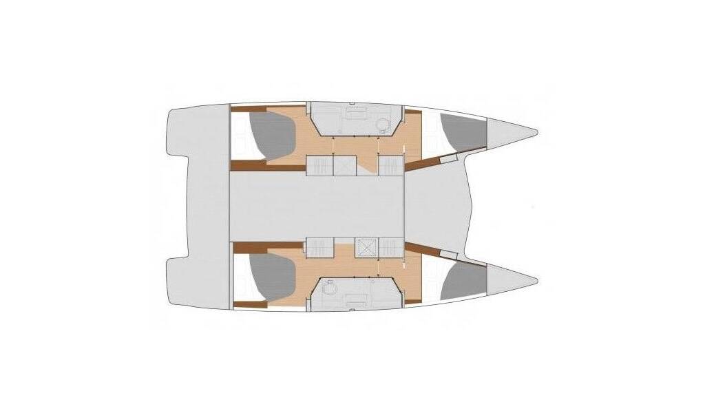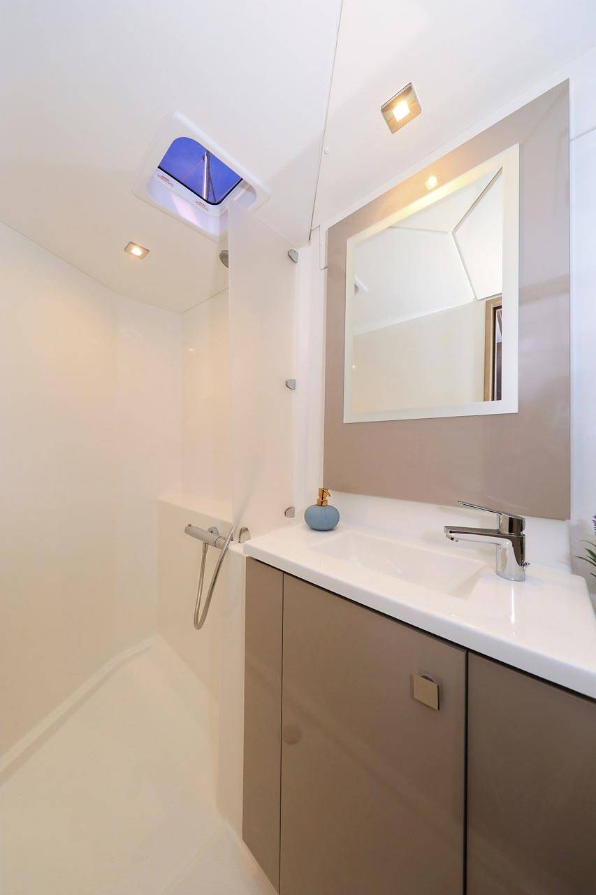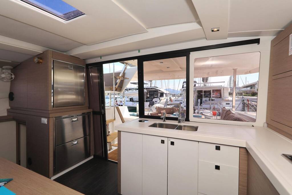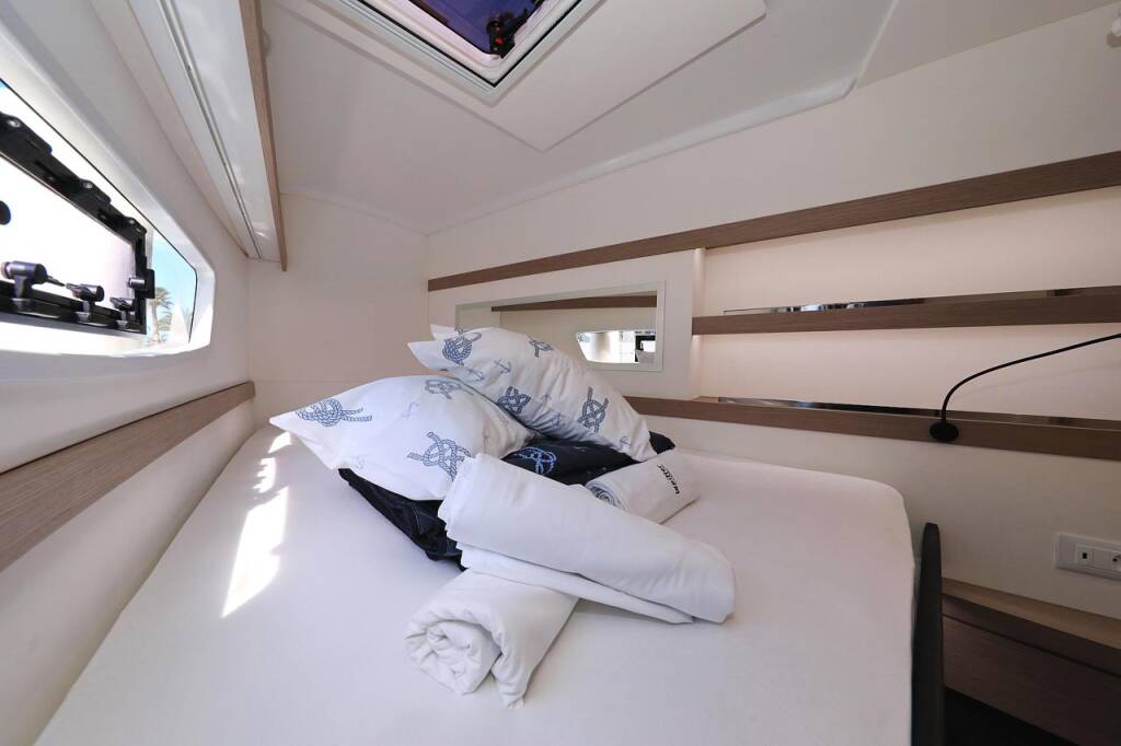 Catamarano Fountaine Pajot Lucia 40 Felicitas II, costruito nel 2020 è ormeggiato in Marina Kornati, Biograd, Zadar, Croazia. Ha 4 cabine, può ospitare 8 + 2 persone e dispone di 2 bagni.