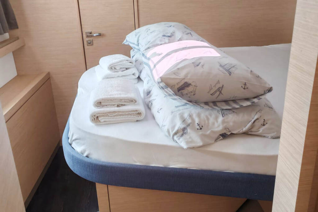 Catamarano Fountaine Pajot Tanna 47 Mateta II, costruito nel 2025 è ormeggiato in Trogir, Yachtclub Seget (Marina Baotić), Split regione, Croazia. Ha 5 + 1 cabine, può ospitare 10 + 1 persone e dispone di 5 + 1 bagni.