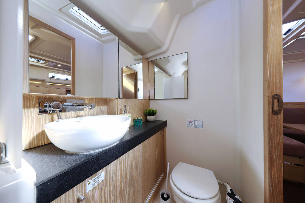Barca a vela Hanse 455 Scarlett, costruito nel 2017 è ormeggiato in Trogir, Yachtclub Seget (Marina Baotić), Split regione, Croazia. Ha 4 cabine, può ospitare 8 + 2 persone e dispone di 2 bagni.