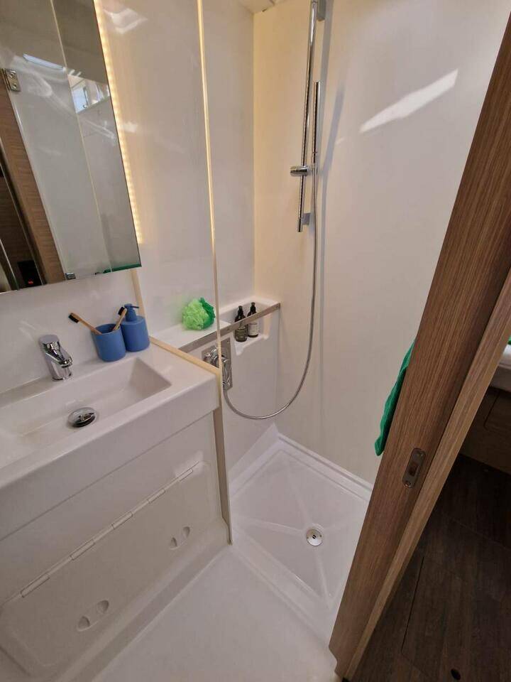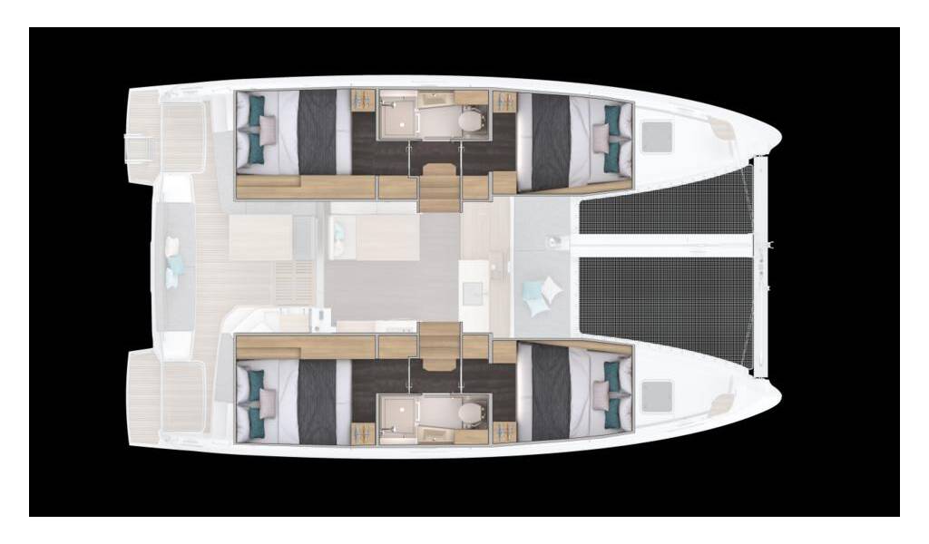 Catamarano Lagoon 38 Doudou, costruito nel 2025 è ormeggiato in Guadeloupe, La Marina Bas du Fort, Guadalupa, Caraibi. Ha 4 + 2 cabine, può ospitare 8 + 2 persone e dispone di 2 bagni.