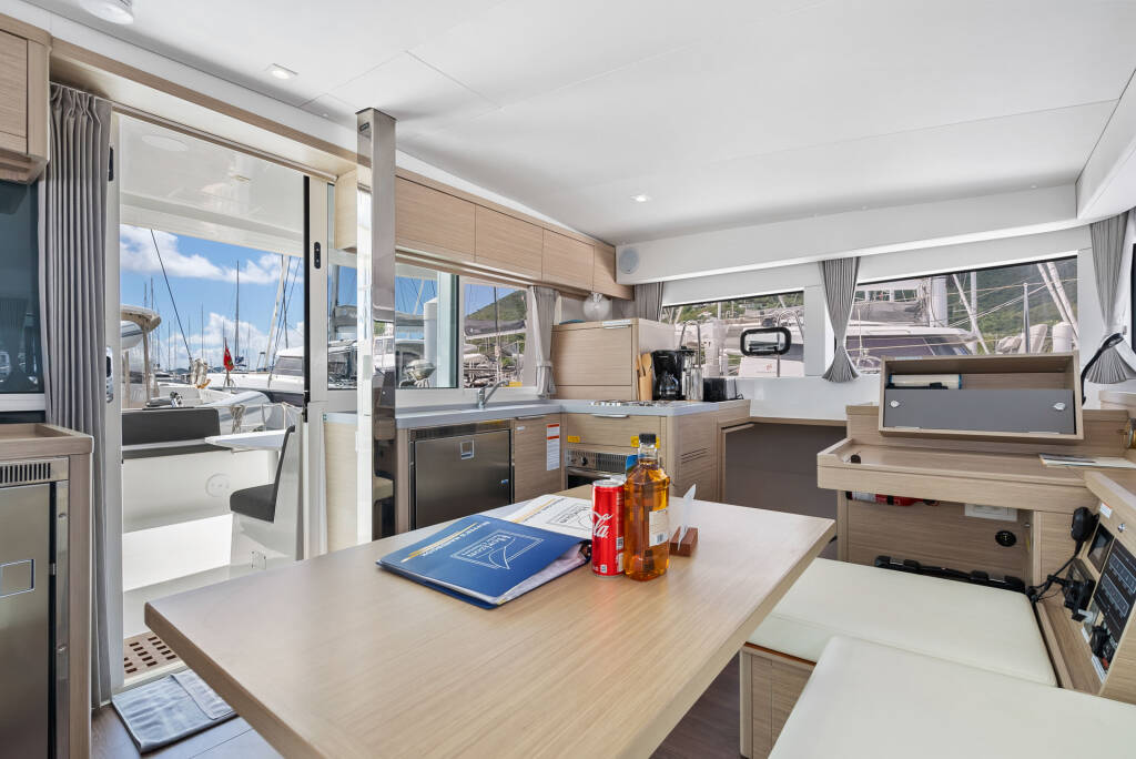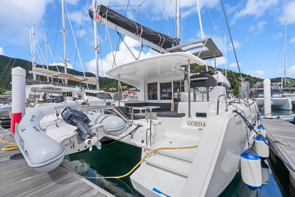 Catamarano Lagoon 40 OW Oasis, costruito nel 2025 è ormeggiato in BVI, Tortola, Nanny Cay Marina, Isole Vergini Britanniche, Isole Vergini Britanniche. Ha 3 + 1 cabine, può ospitare 6 + 1 persone e dispone di 2 bagni.