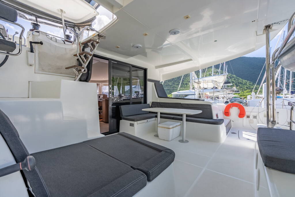 Catamarano Lagoon 42 Arctic Fantasy II, costruito nel 2020 è ormeggiato in BVI, Tortola, Nanny Cay Marina, Isole Vergini Britanniche, Isole Vergini Britanniche. Ha 4 + 2 cabine, può ospitare 8 + 2 persone e dispone di 4 bagni.