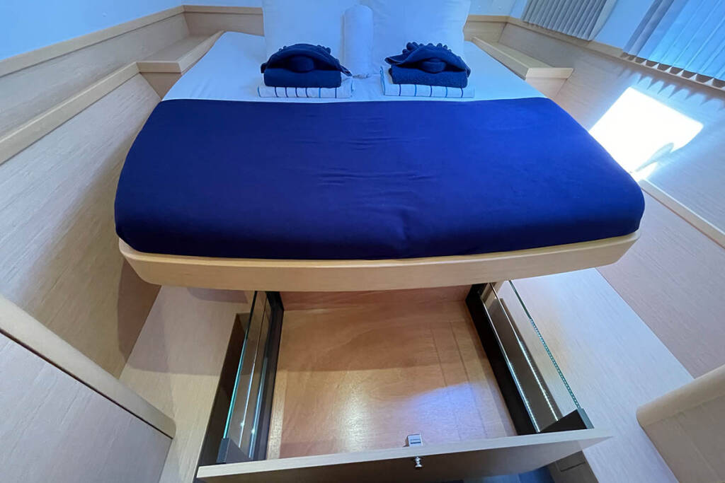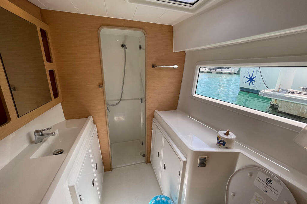 Catamarano Lagoon 42 Moana, costruito nel 2019 è ormeggiato in BVI, Tortola, Nanny Cay Marina, Isole Vergini Britanniche, Isole Vergini Britanniche. Ha 3 + 1 cabine, può ospitare 6 + 2 + 1 persone e dispone di 3 bagni.
