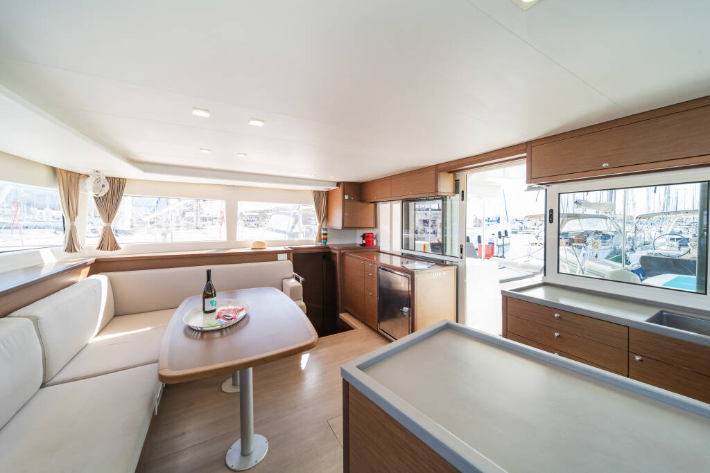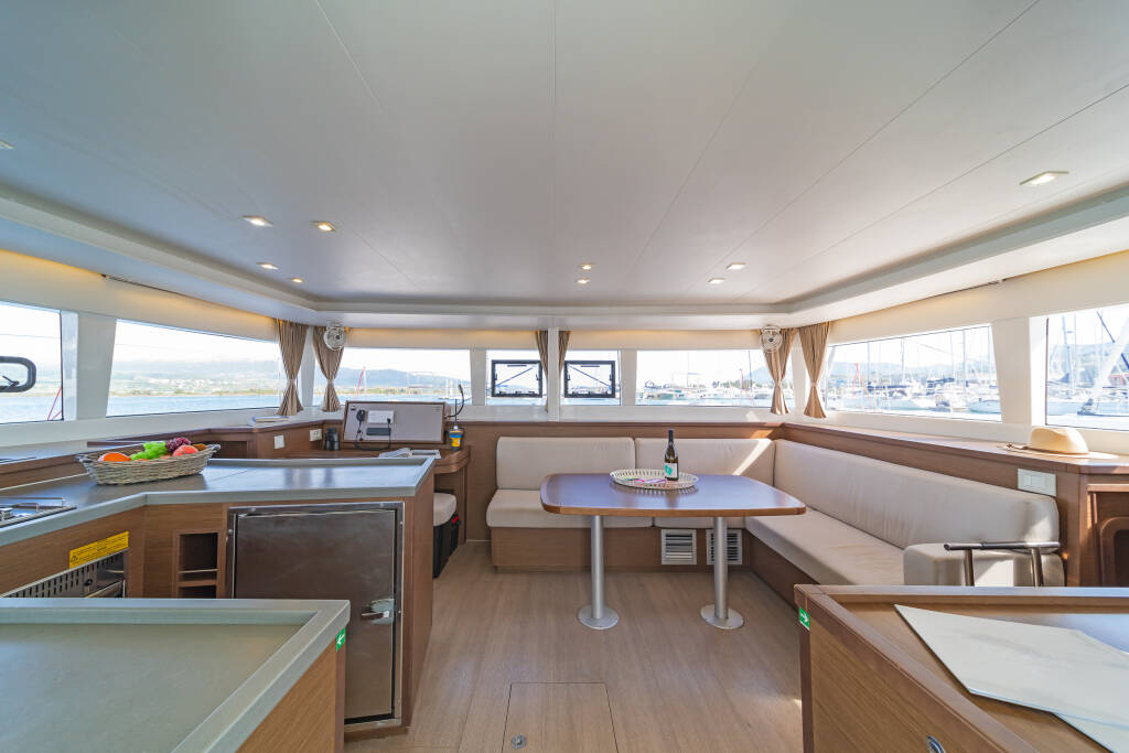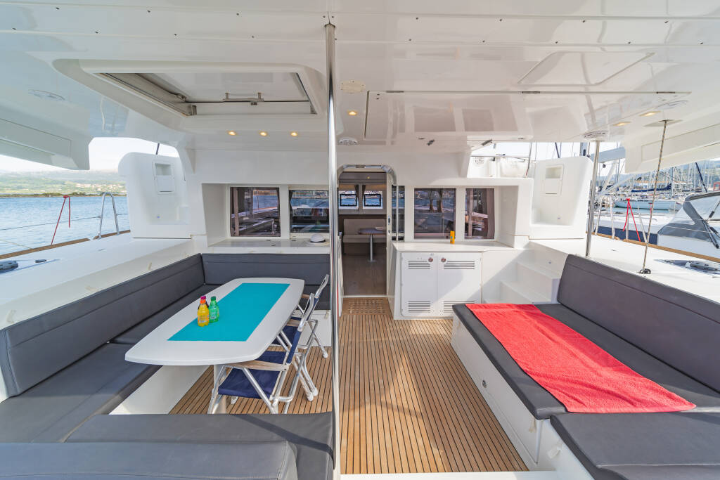 Catamarano Lagoon 450 F Cassiopeia II, costruito nel 2019 è ormeggiato in Corfu, Gouvia Marina, Isole Ioniche, Grecia. Ha 4 + 2 cabine, può ospitare 8 + 2 persone e dispone di 4 + 1 bagni.