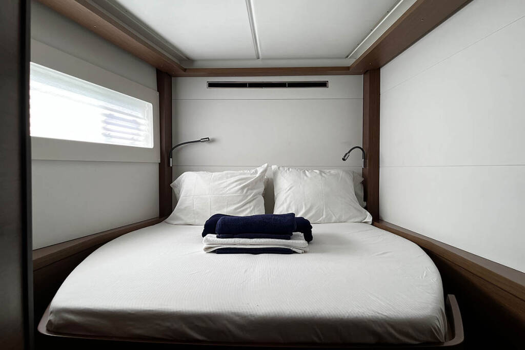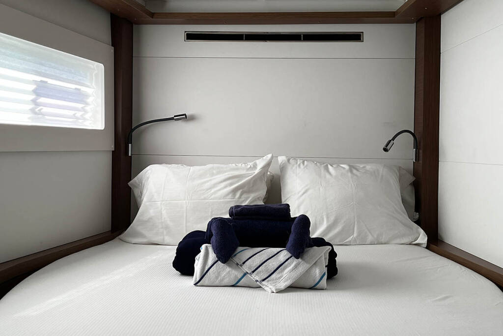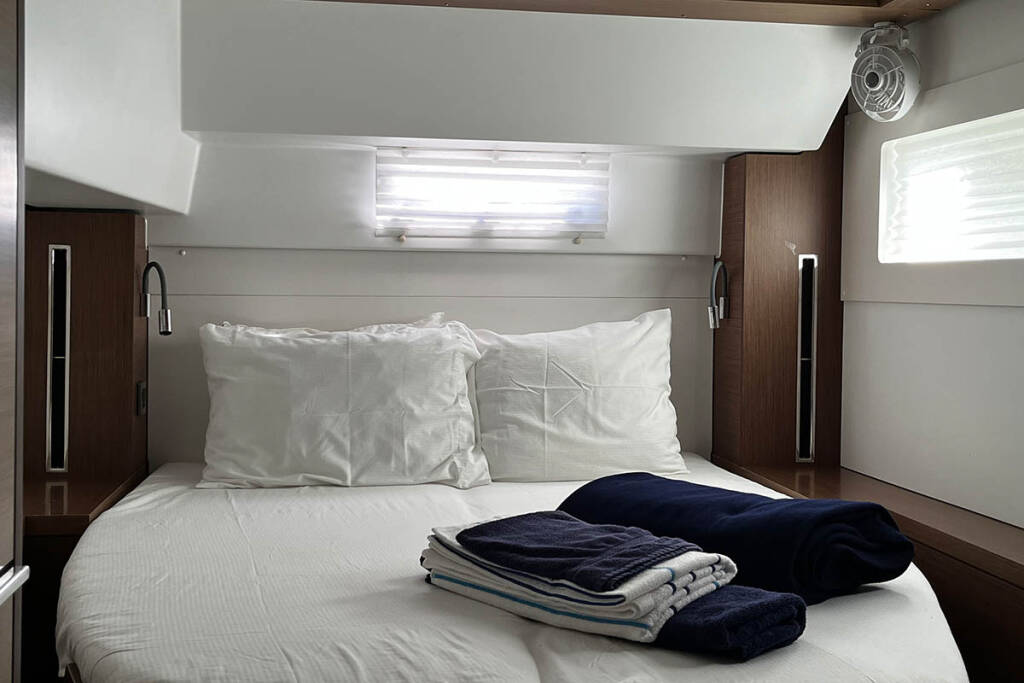 (for charters up to max 3 guests, one person works as a skipper and cook) + provisioning, Crew on board must have their own toilets/ showers. If either a skipper or a hostess/cook is on board, 1 double cabin will be required for him/her. If both a skipper and a hostess/cook are on board, 1 double cabin and 1 forepeak cabin will be required for them. Exceptions exists for specific layouts, Sales Agents will provide more details about the different boat models - Da pagare ora