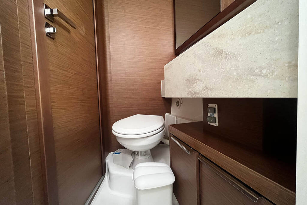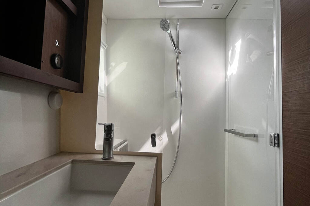 +provisioning ; Crew on board must have their own toilets/ showers. If either a skipper or a hostess/cook is on board, 1 double cabin will be required for him/her. If both a skipper and a hostess/cook are on board, 1 double cabin and 1 forepeak cabin will be required for them. Exceptions exists for specific layouts, Sales Agents will provide more details about the different boat models.