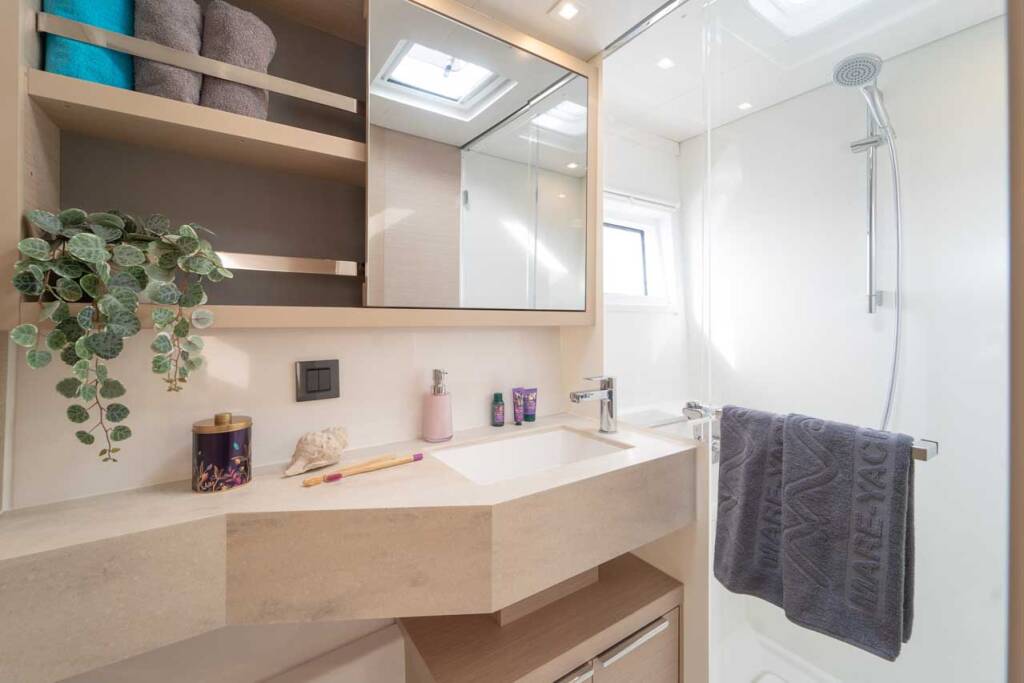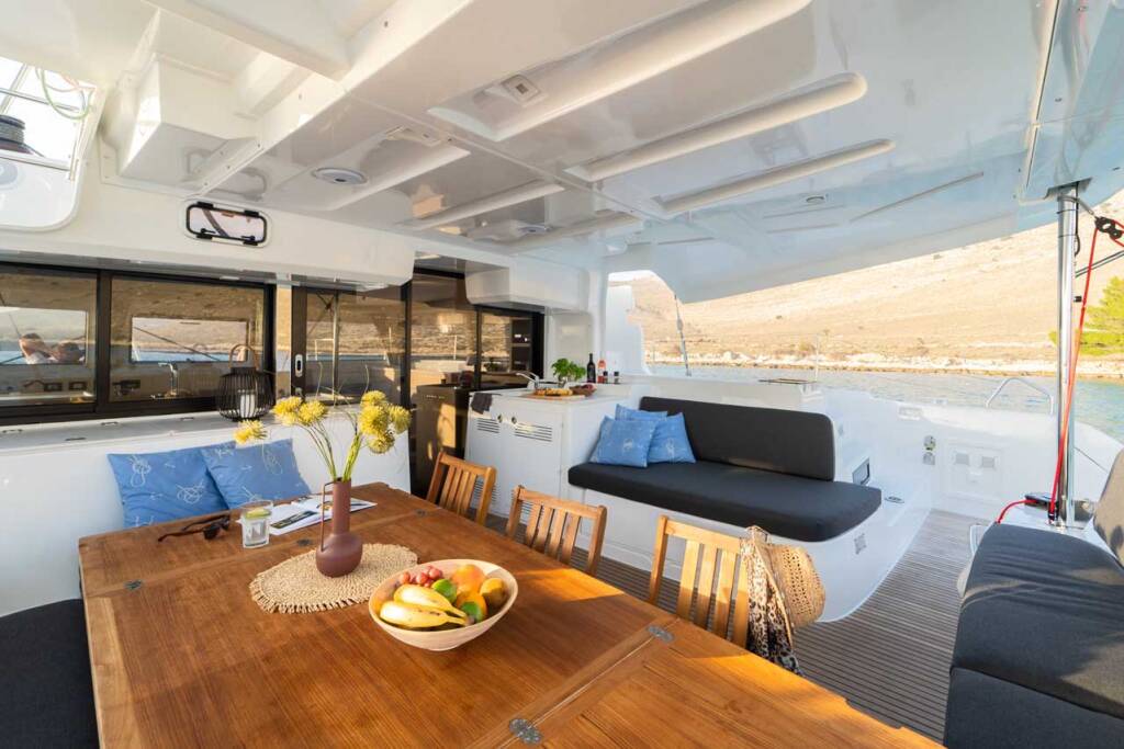 Catamarano Lagoon 46 Forever Young, costruito nel 2022 è ormeggiato in Marina Mandalina, Sibenik, Sibenik, Croazia. Ha 4 + 2 cabine, può ospitare 8 + 2 + 2 persone e dispone di 4 bagni.