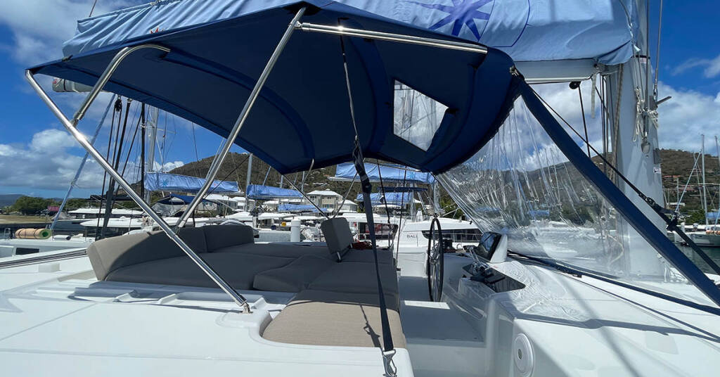 Catamarano Lagoon 46 Pebbles, costruito nel 2023 è ormeggiato in BVI, Tortola, Nanny Cay Marina, Isole Vergini Britanniche, Isole Vergini Britanniche. Ha 4 + 2 cabine, può ospitare 8 + 2 + 2 persone e dispone di 4 bagni.