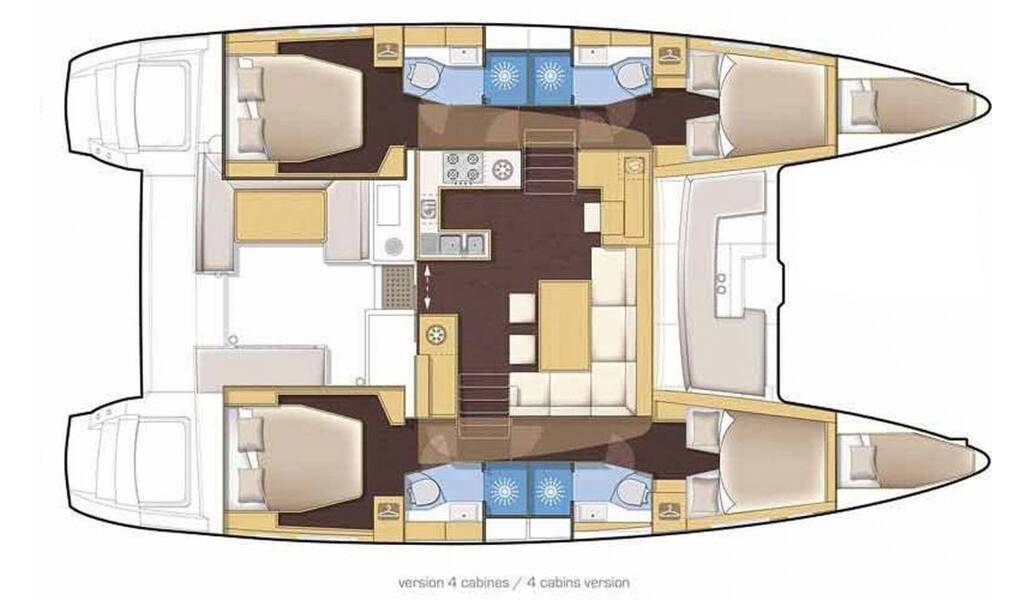 Catamarano Lagoon 46 Pergisos, costruito nel 2021 è ormeggiato in Lefkada, Nydri, Armonia Hotel, Isole Ioniche, Grecia. Ha 4 + 2 cabine, può ospitare 8 + 2 + 2 persone e dispone di 4 + 1 bagni.
