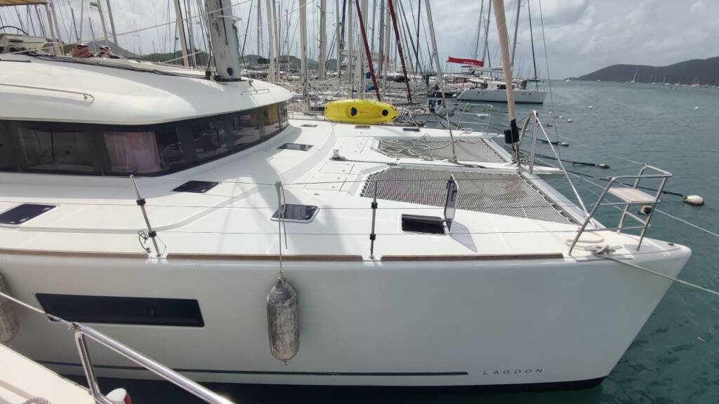 Catamarano Lagoon 620 DREAM GUADELOUPE II, costruito nel 2019 è ormeggiato in Martinique, Le Marin, Martinica, Caraibi. Ha 6 + 2 cabine, può ospitare 12 + 2 persone e dispone di 6 + 2 bagni.