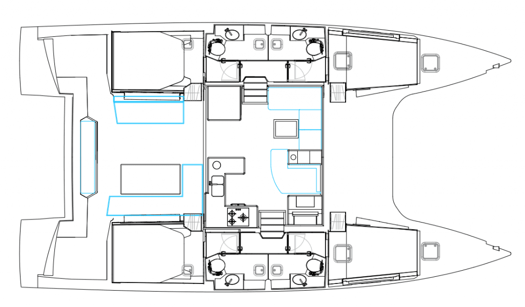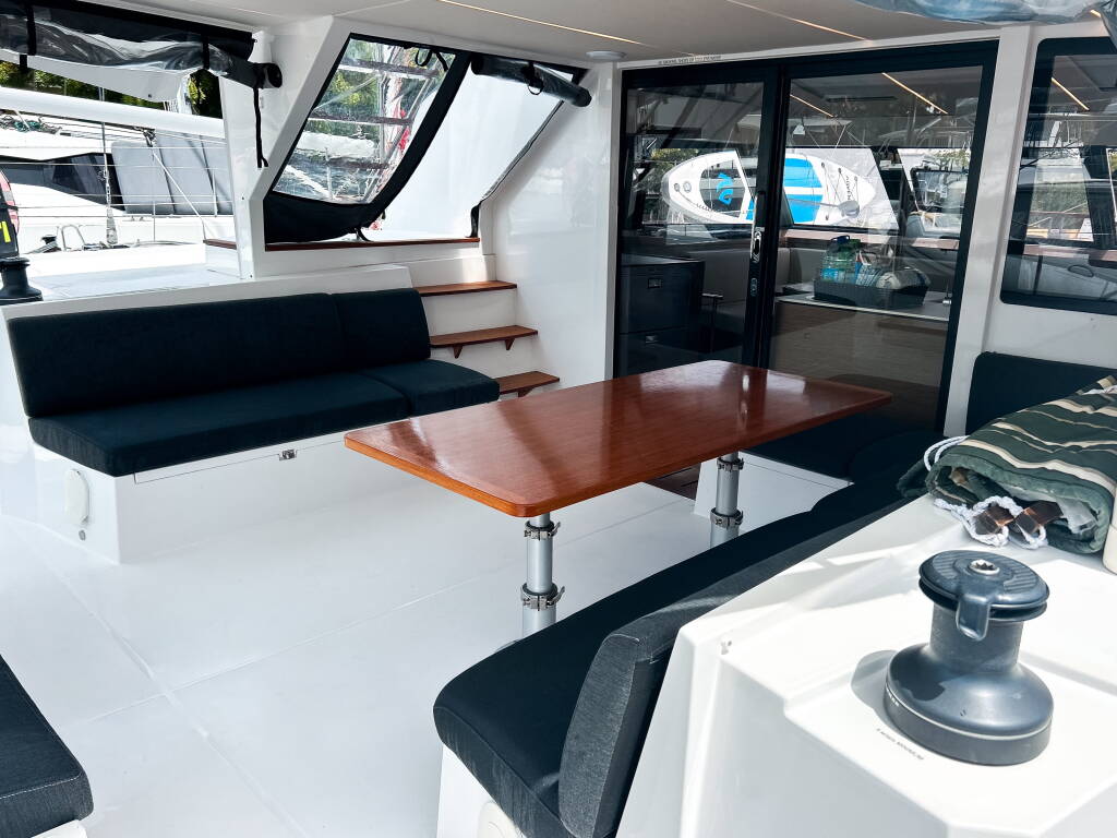 Catamarano Nautitech 46 Cadenza, costruito nel 2023 è ormeggiato in BVI, Tortola, Nanny Cay Marina, Isole Vergini Britanniche, Isole Vergini Britanniche. Ha 4 + 2 cabine, può ospitare 8 + 2 persone e dispone di 4 bagni.