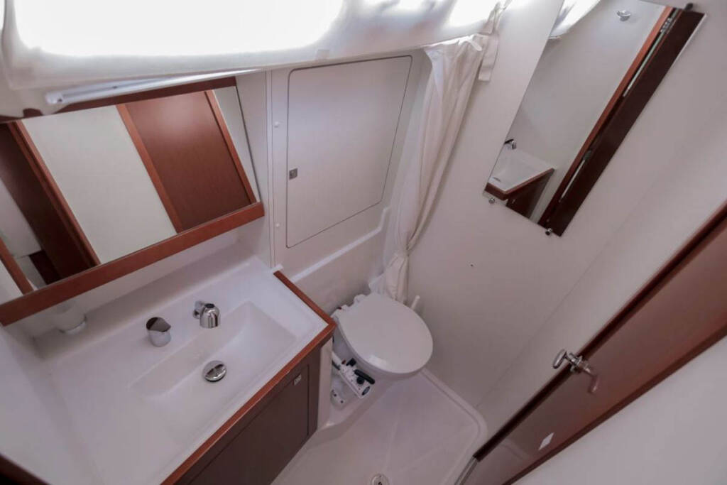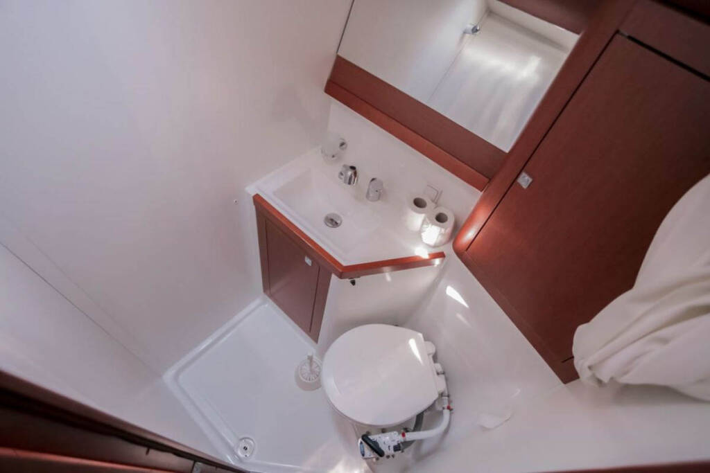 +provisioning ; Crew on board must have their own toilets/ showers. If either a skipper or a hostess/cook is on board, 1 double cabin will be required for him/her. If both a skipper and a hostess/cook are on board, 1 double cabin and 1 forepeak cabin will be required for them. Exceptions exists for specific layouts, Sales Agents will provide more details about the different boat models. - Da pagare in base