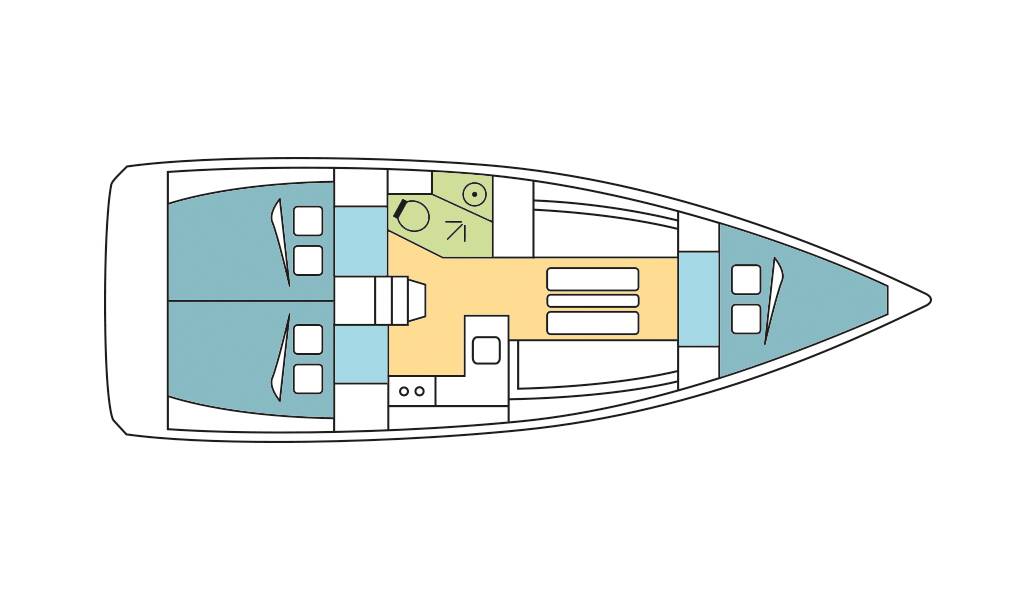 skipper and a hostess/cook are on board, 1 double cabin and 1 forepeak cabin will be